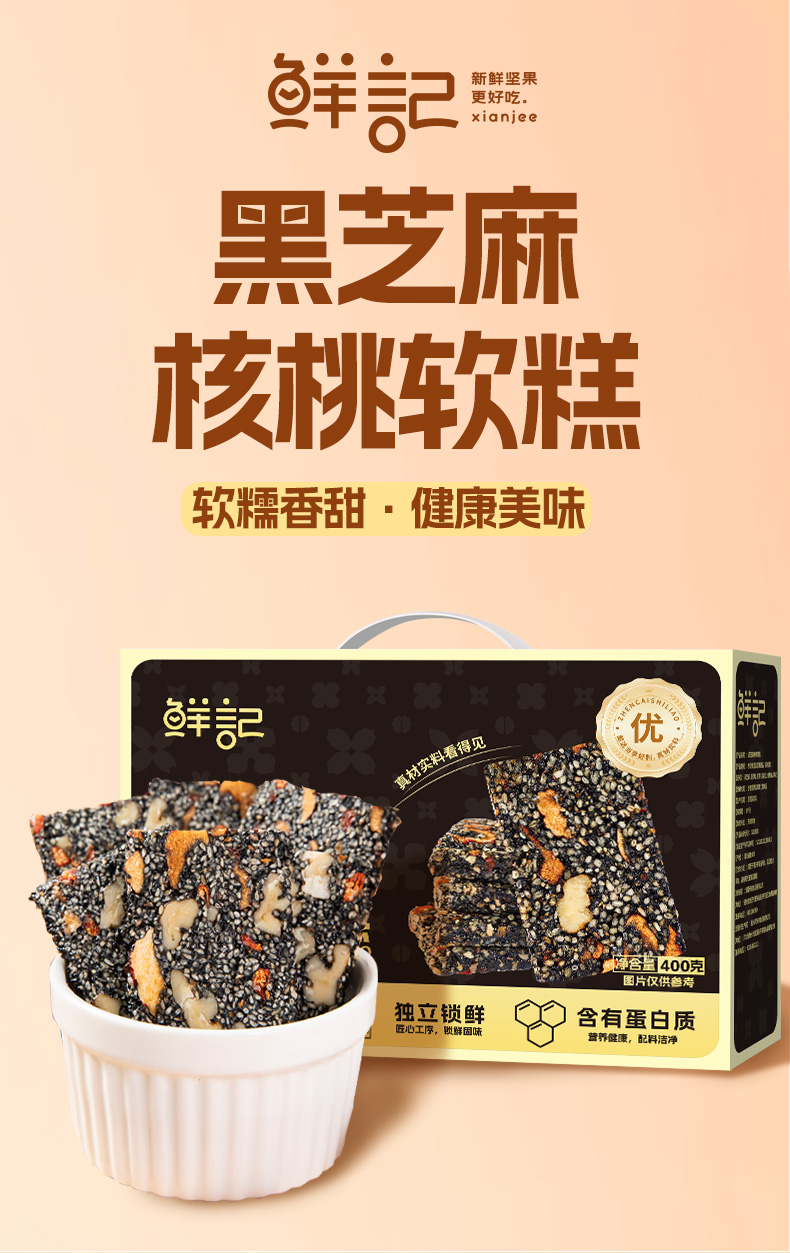 鲜记 黑芝麻核桃软糕 健康零食 400g 咖啡色(单位:盒)