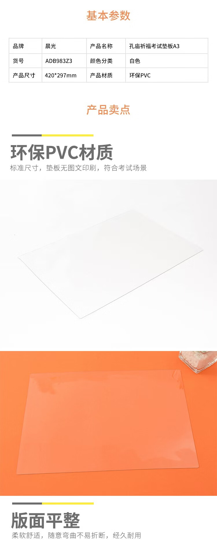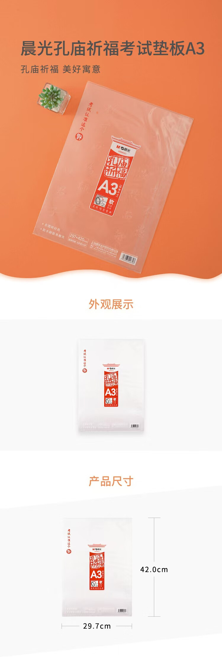 晨光(M&G) 孔庙祈福系列透明防水软垫板 ADB983Z3 A3 透明(单位:张)