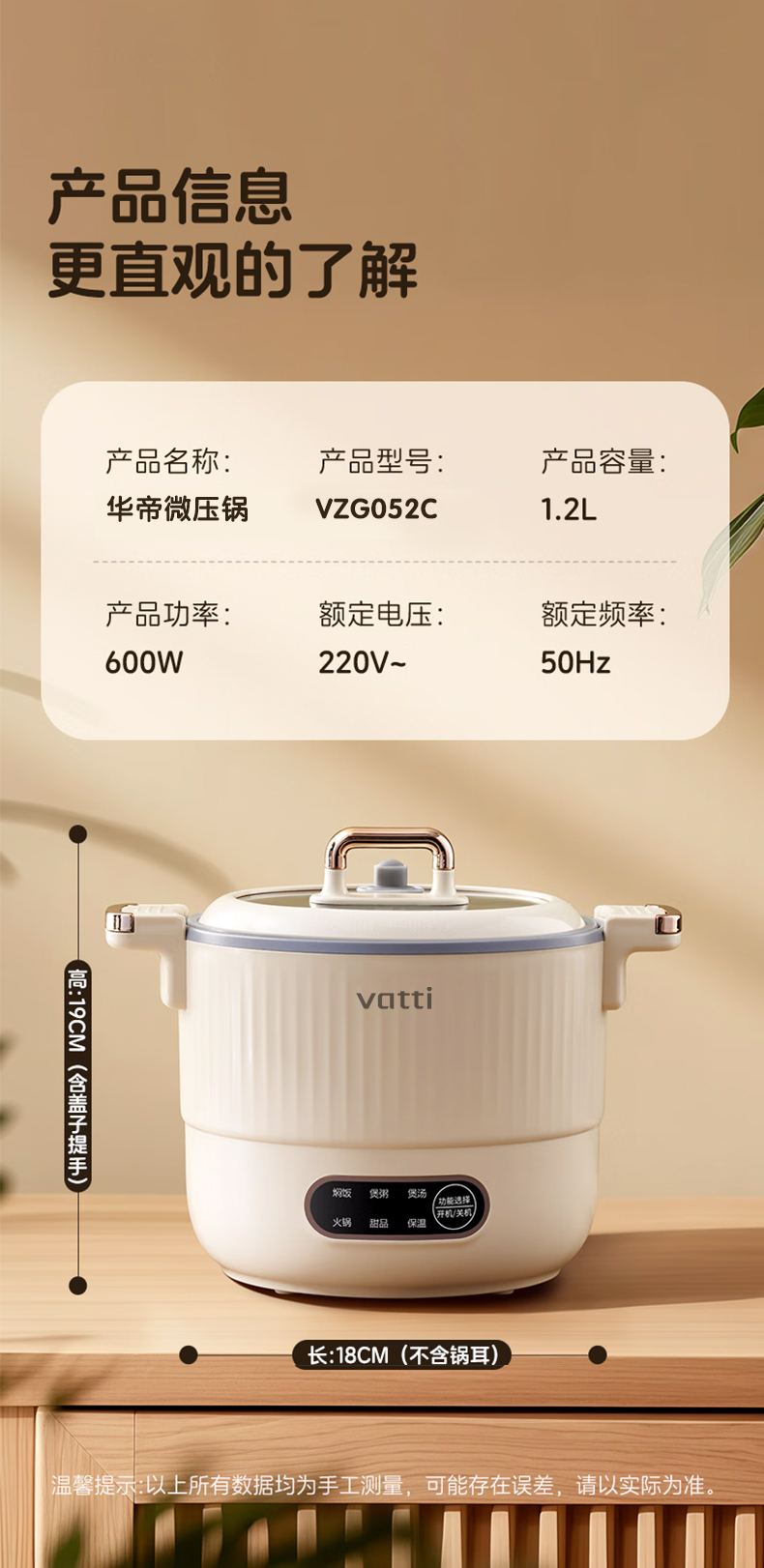 华帝(VATTI) 微压锅 VZG052C 1.2L 白色(单位:台)