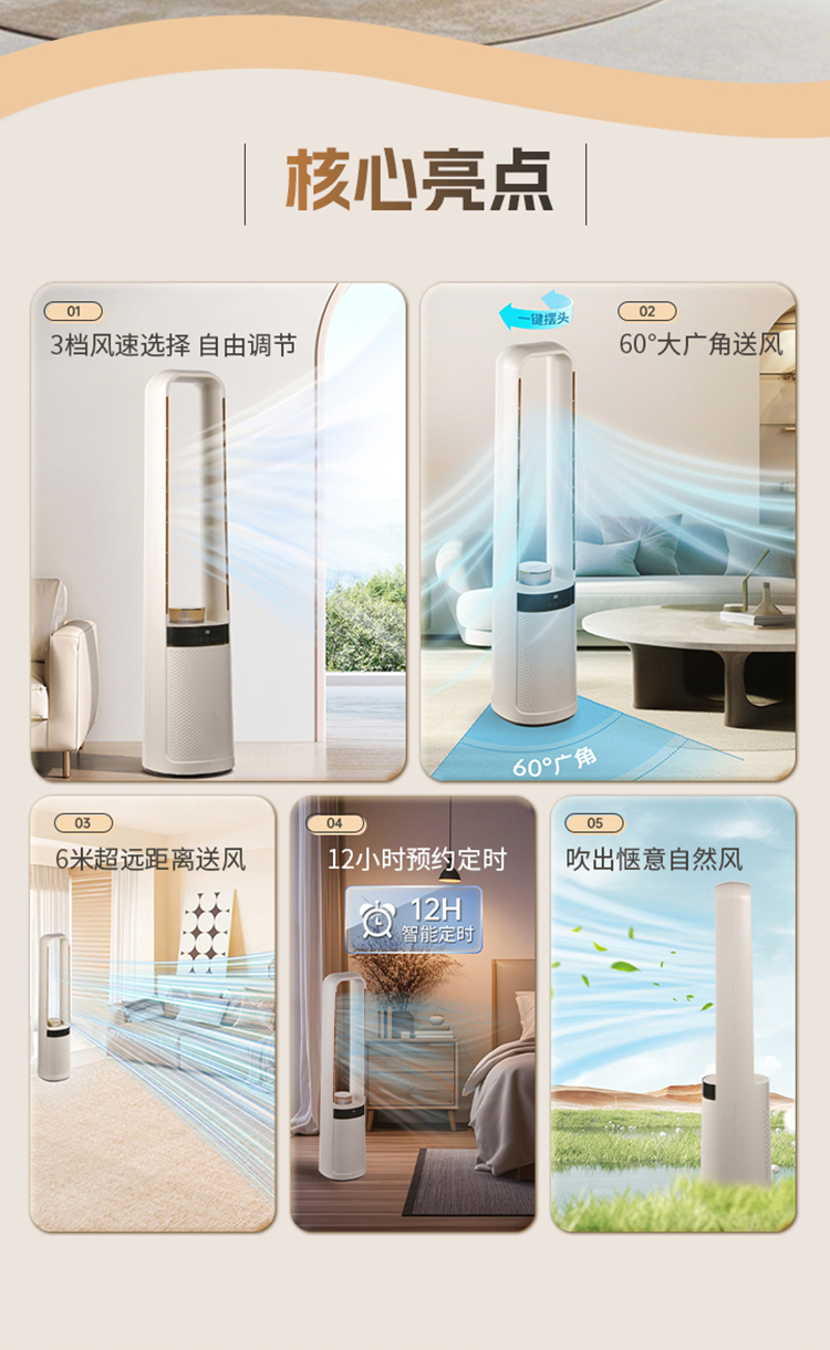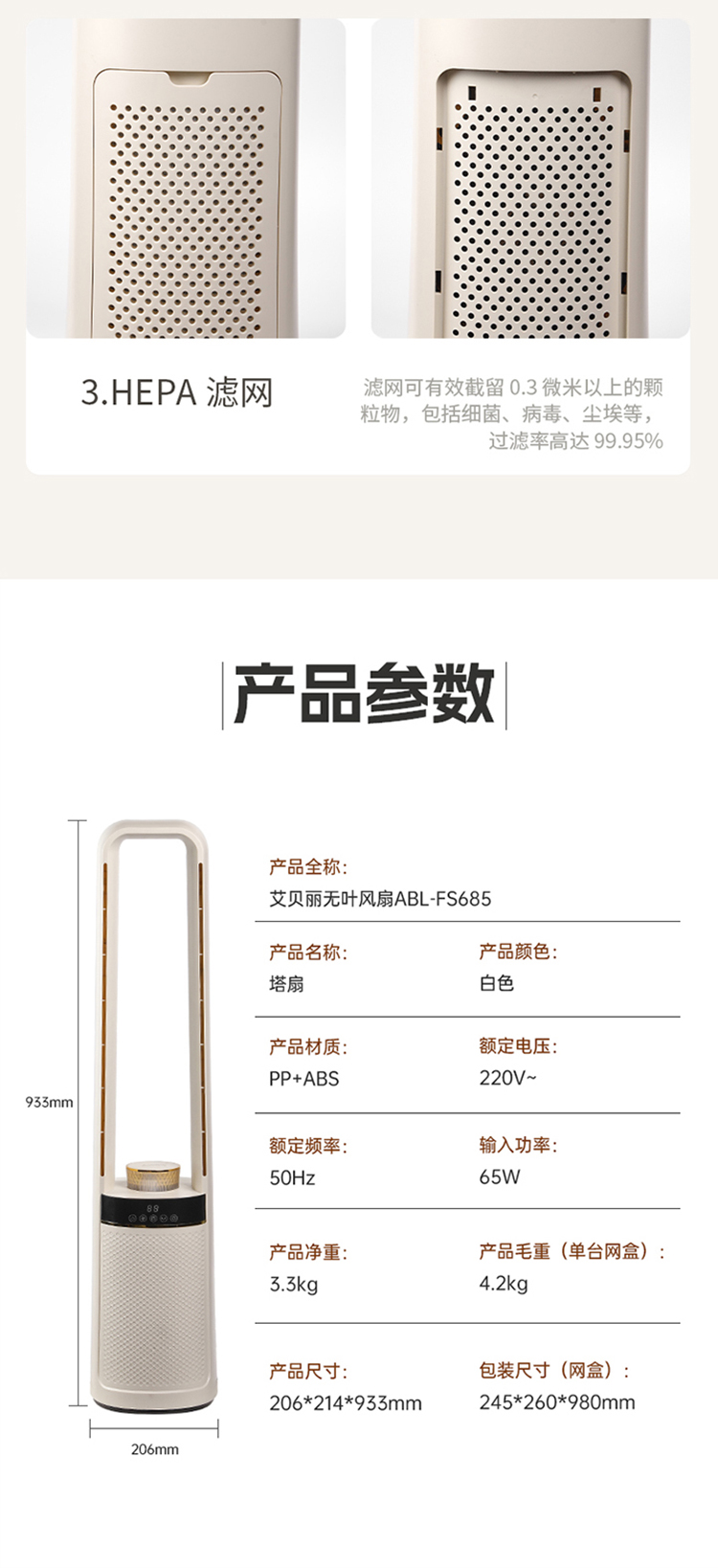 艾贝丽(Abereve) 无叶风扇 ABL-FS685 65W 米白色(单位:台)