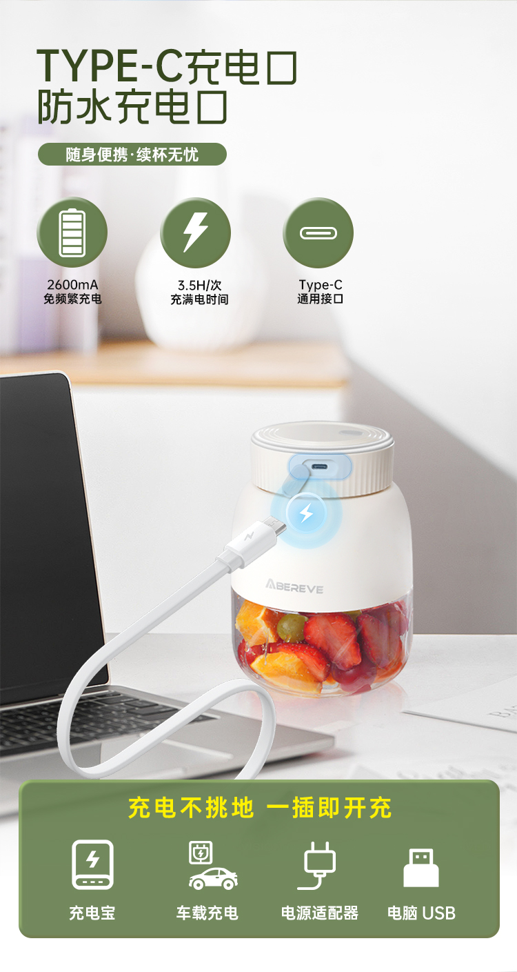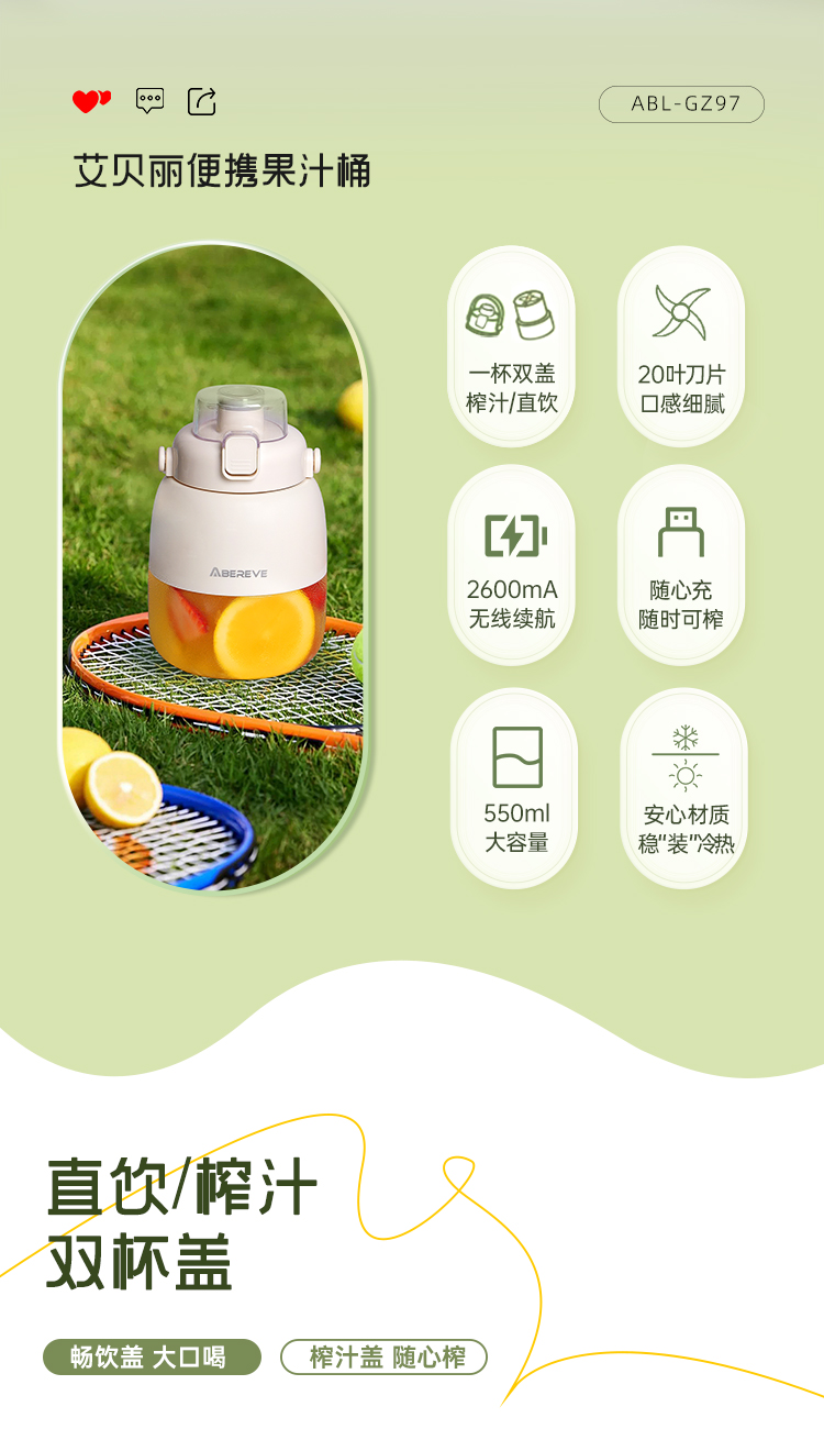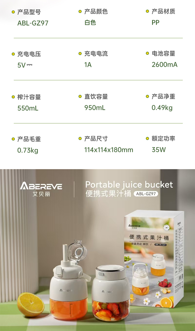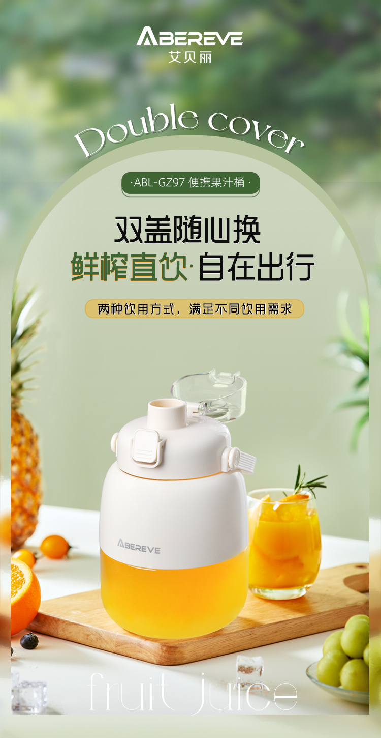 艾贝丽(Abereve) 双杯盖果汁机 ABL-GZ97 550ML 白色(单位:台)