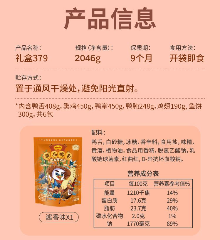 藤桥牌 休闲鸭肉零食礼盒大礼包 富贵全家福 2046g 提 深蓝色(单位:提)