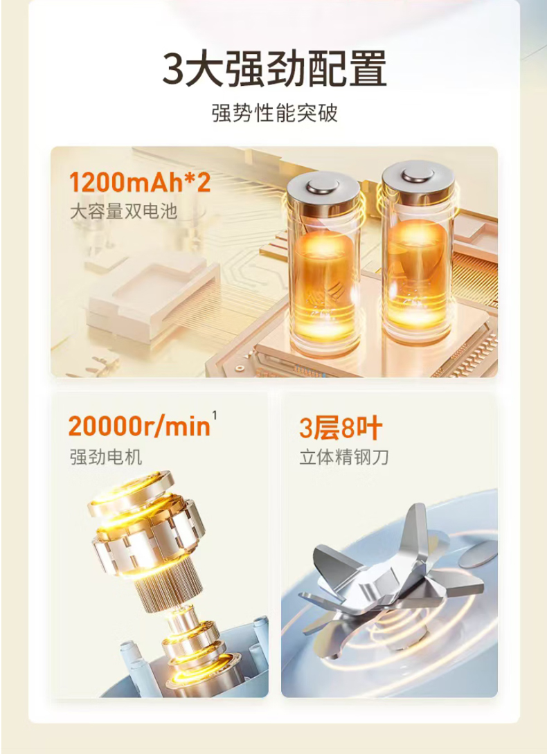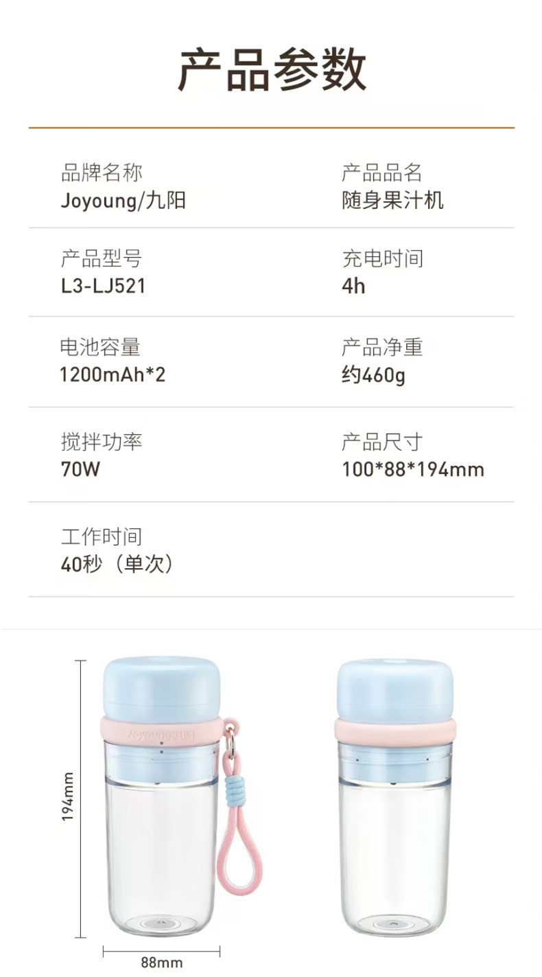 九阳(Joyoung) 便携果汁机 L3-LJ521 300ml 婴儿蓝(单位:台)
