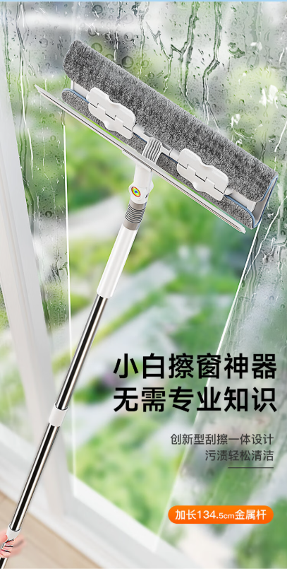 佳帮手 擦刮两用,可夹抹布 玻璃擦 JBS-BLC-N1101-JWT 1.34m加长杆 白色(单位:个)