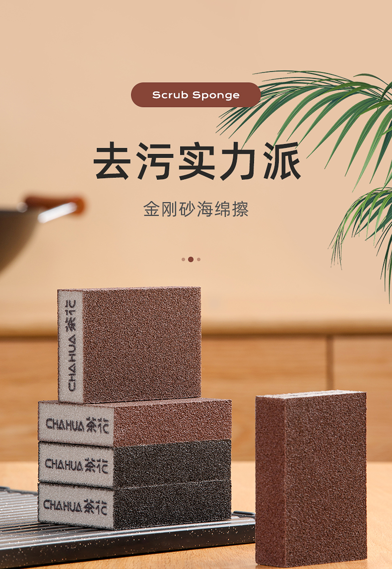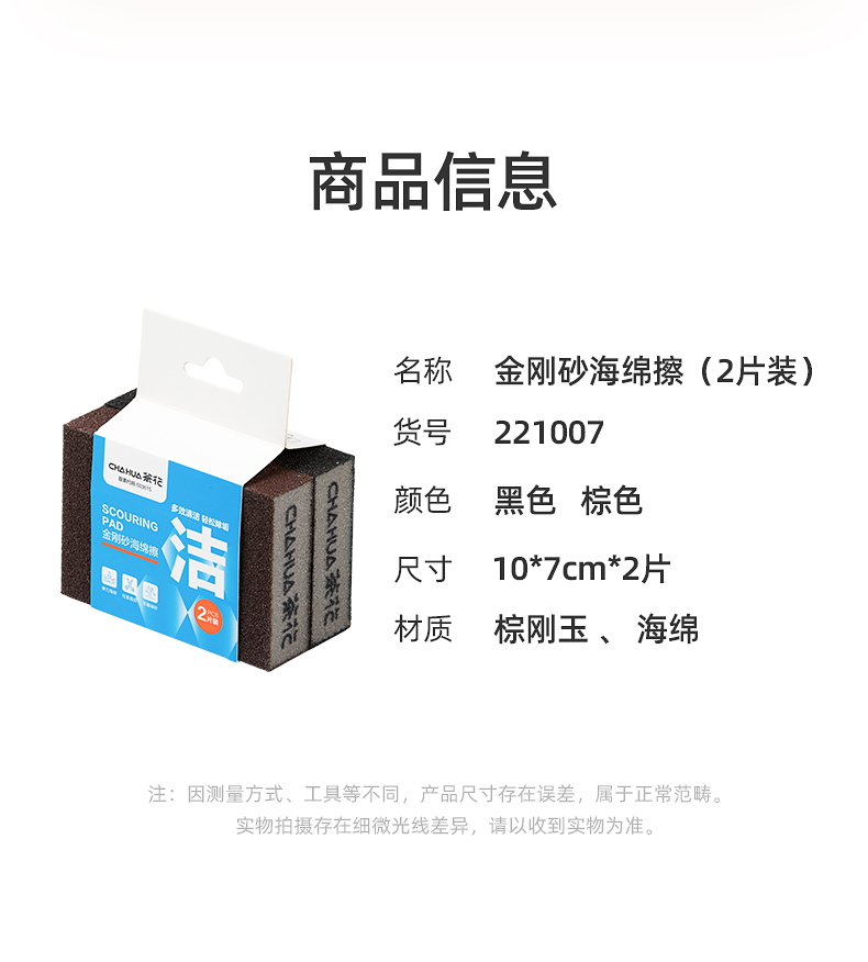 茶花(CHAHUA) 金刚砂海绵擦 221007 1包2片装 混色【10*7cm】(单位:包)