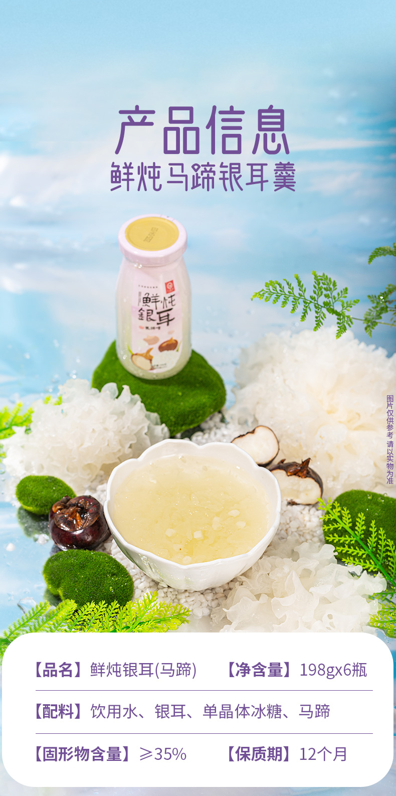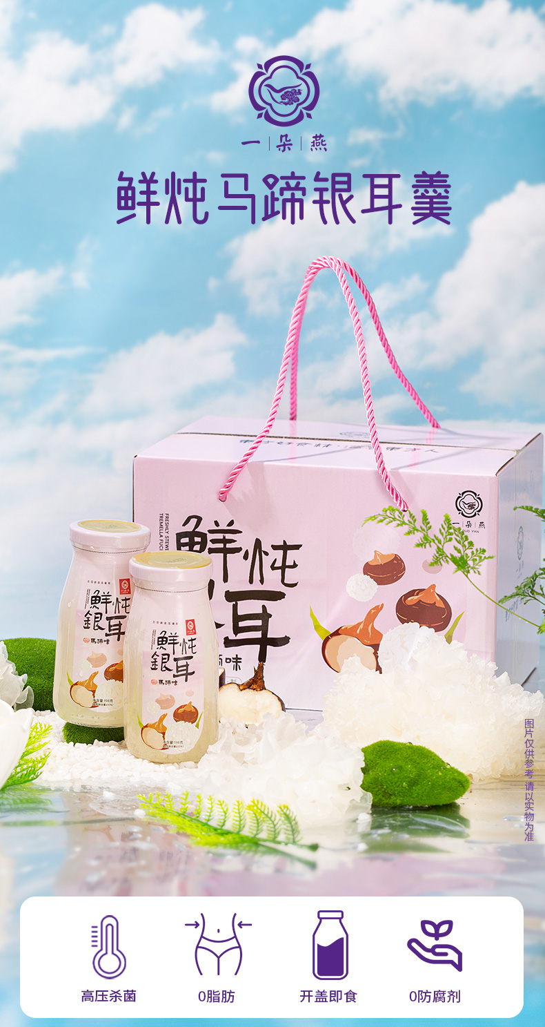 一朵燕(YIDUOYAN) 鲜炖银耳羹(马蹄味) 礼盒装 1188克(198ml*6瓶) 紫色(单位:盒)