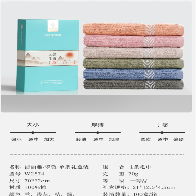 洁丽雅(Grace) 翠微毛巾单条礼盒装 W2574 70*32cm 混色(单位:盒)