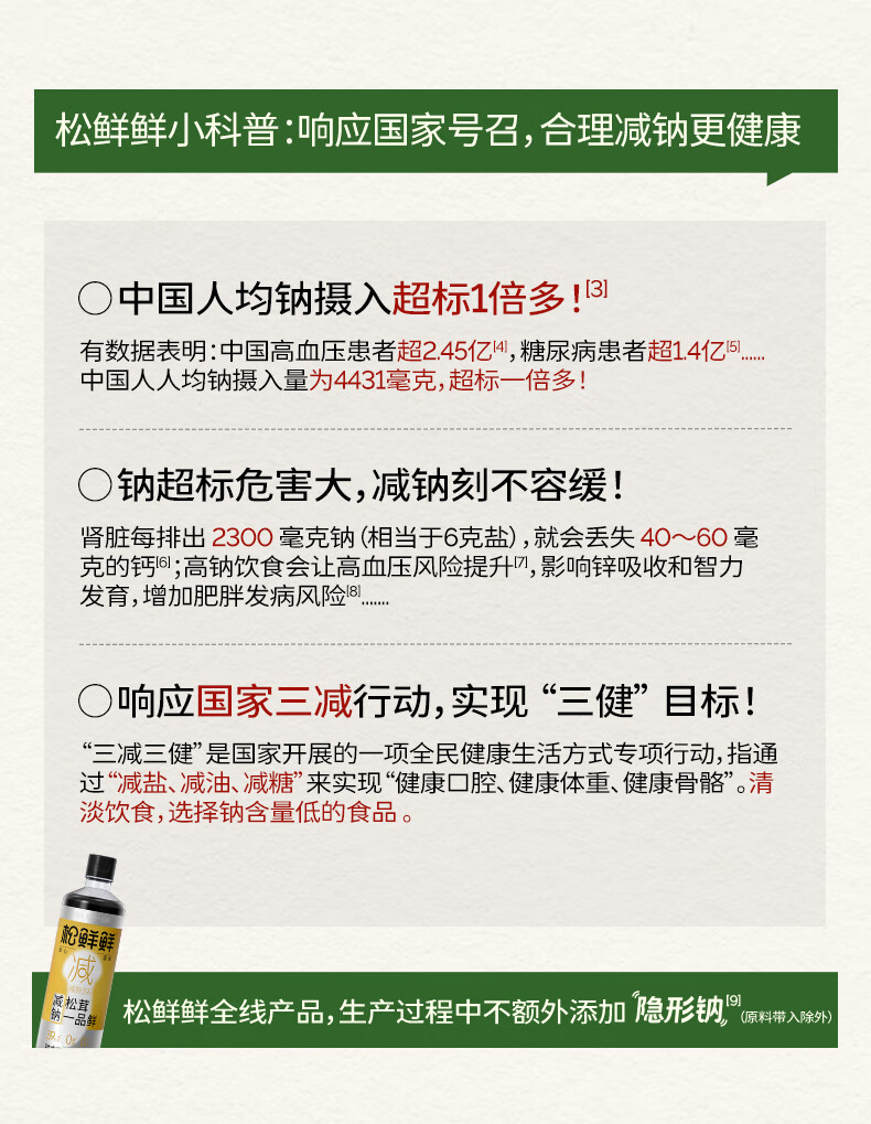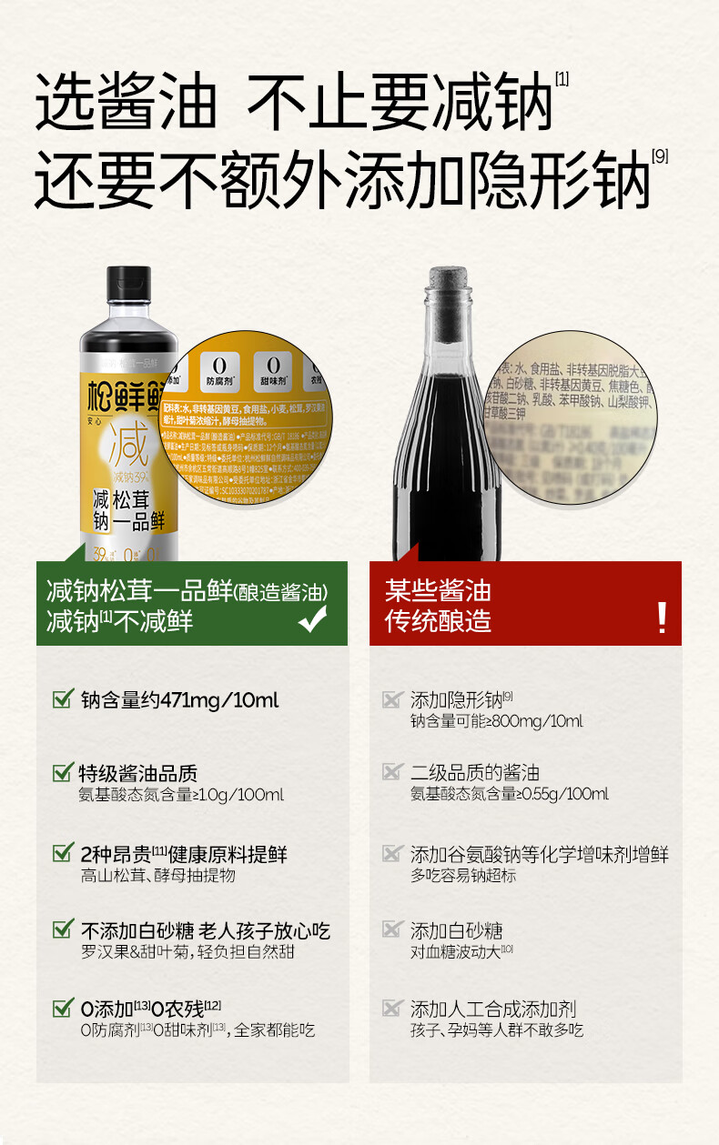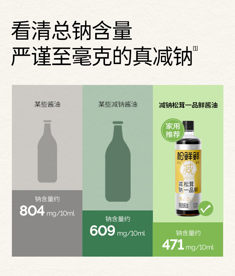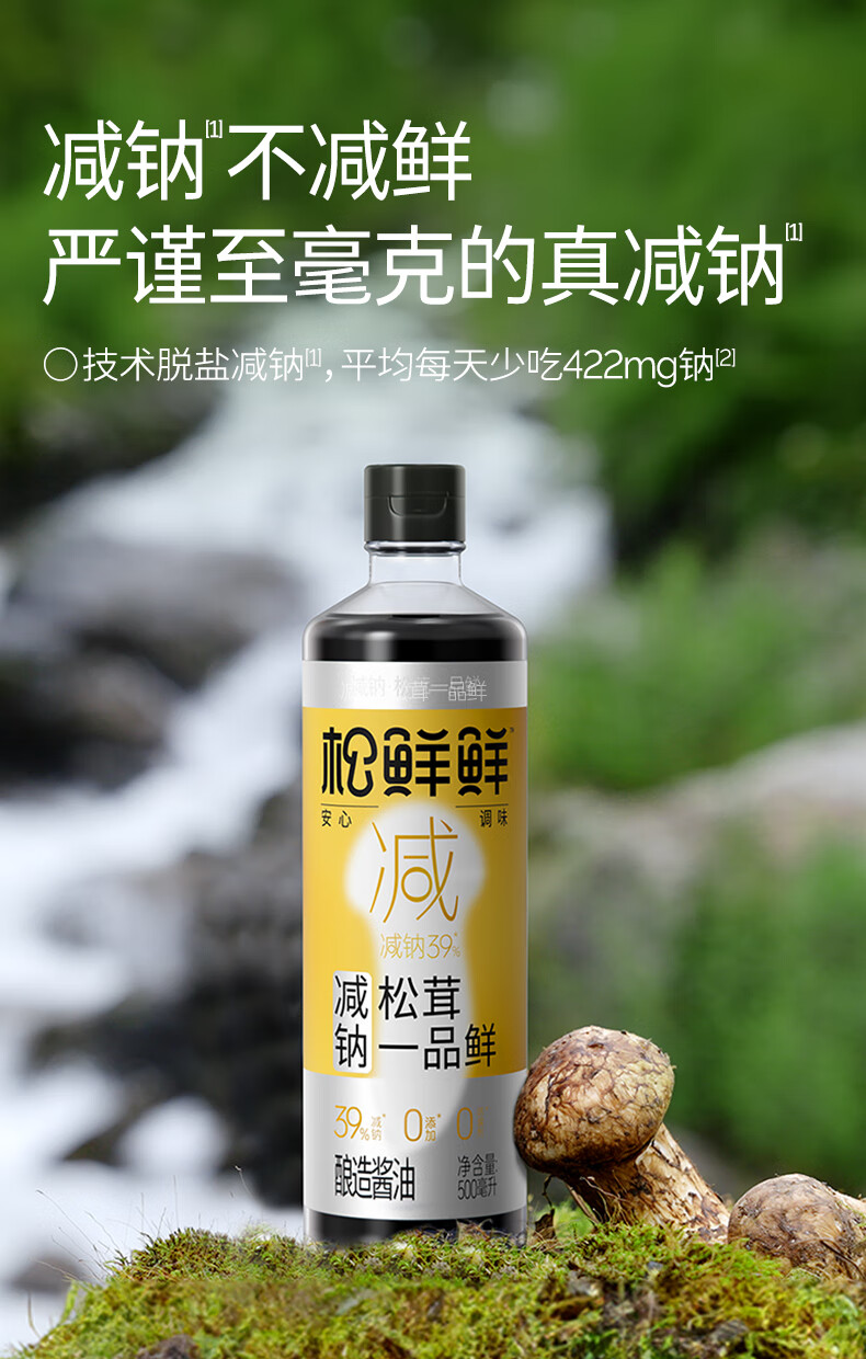 松鲜鲜 酱油 减钠松茸一品鲜玻璃瓶(减钠39%) 500ml*3瓶 香槟黄(单位:组)