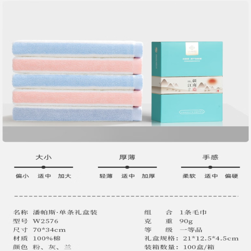 洁丽雅(Grace) 潘帕斯毛巾单条礼盒装 W2576 70*34cm 混色(单位:盒)