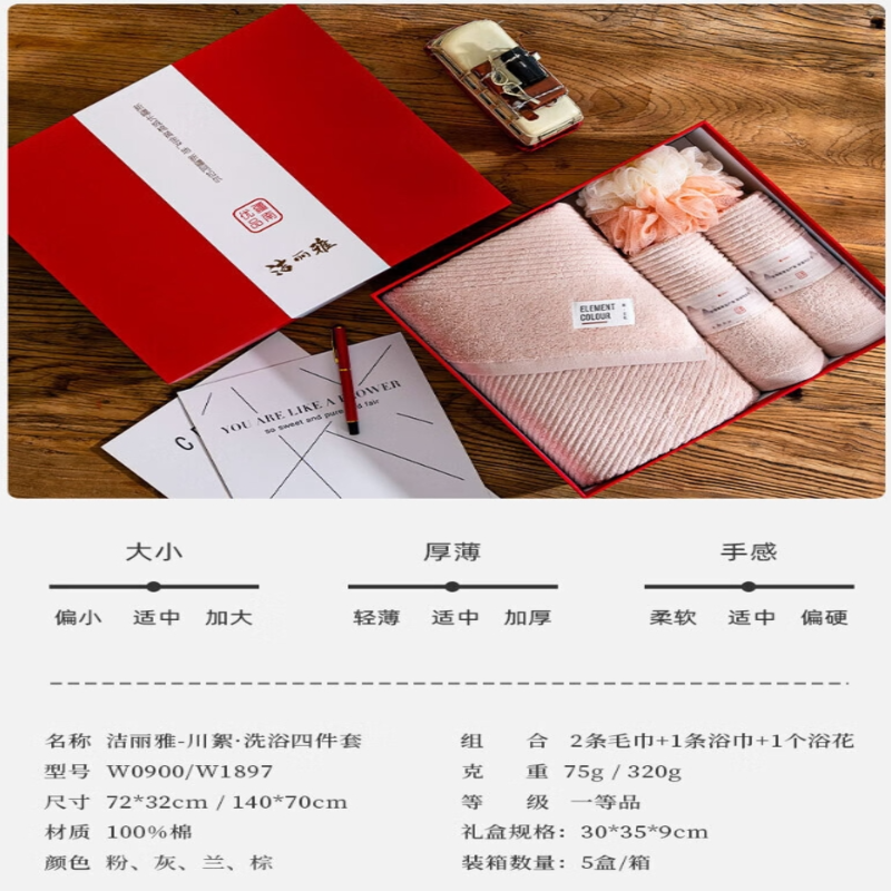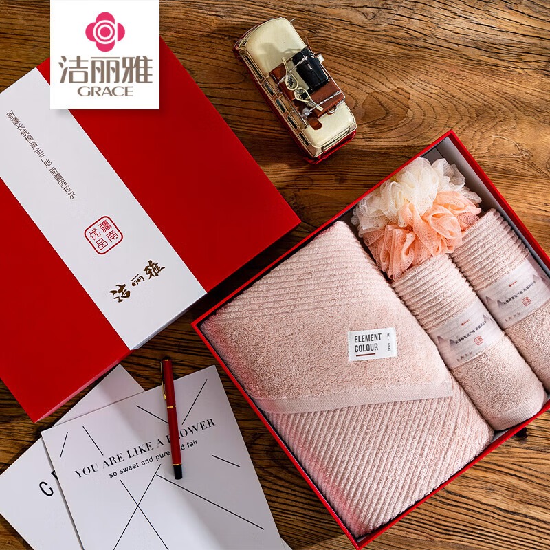 洁丽雅(Grace) 川絮毛巾洗浴套装 W0900+W1897 四件套 混色(单位:盒)