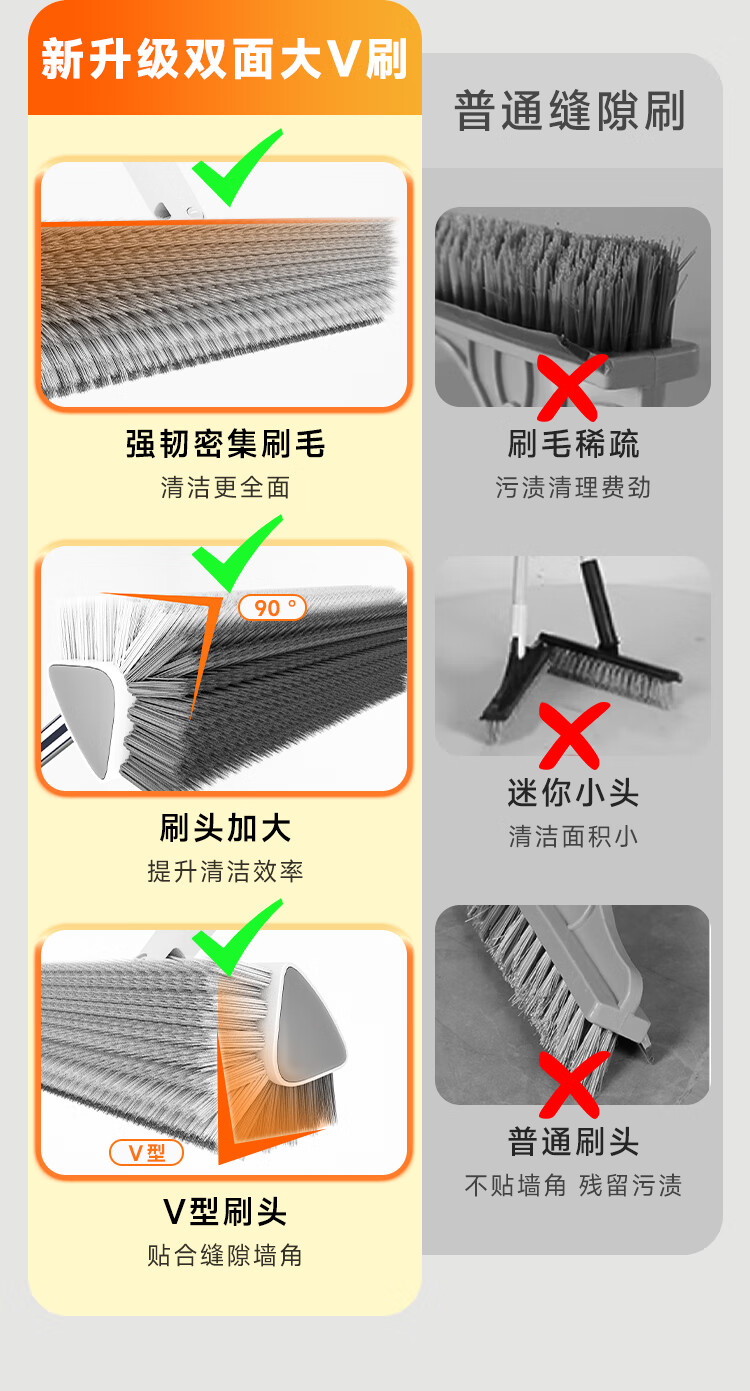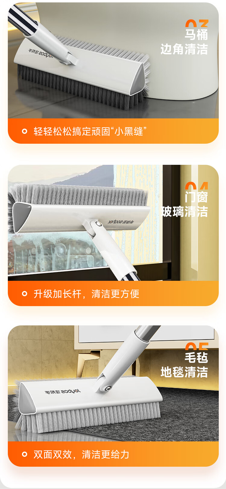 佳帮手 N02-长杆缝隙地刷 JBS-DS-N02-JWT 133cm 佳白(单位:把)
