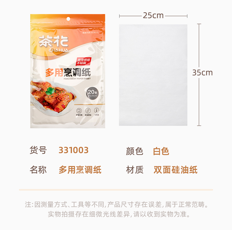 茶花(CHAHUA) 多用盒装烹调纸30cm 331001 一盒8米 本白色(单位:盒)