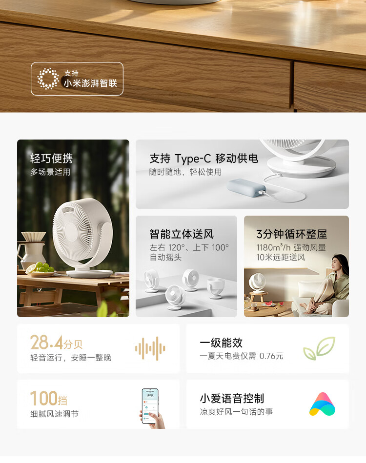 米家(MIJIA) 直流变频台式循环扇 BPLDS10DM 18W 白色(单位:台)