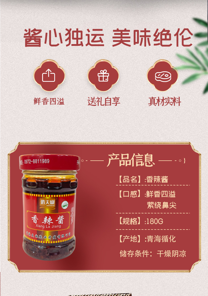 俏天椒 香辣酱 香而不辣 180g*3瓶 枫叶色(单位:组)