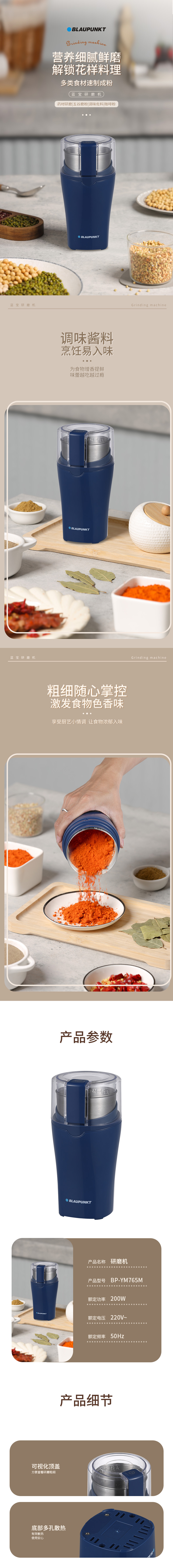 蓝宝(BLAUPUNKT) 研磨机 BP-YM765M 200W 星耀蓝(单位:台)