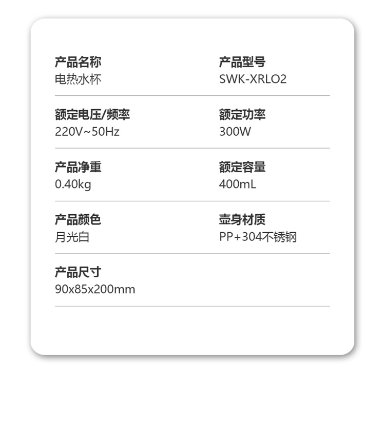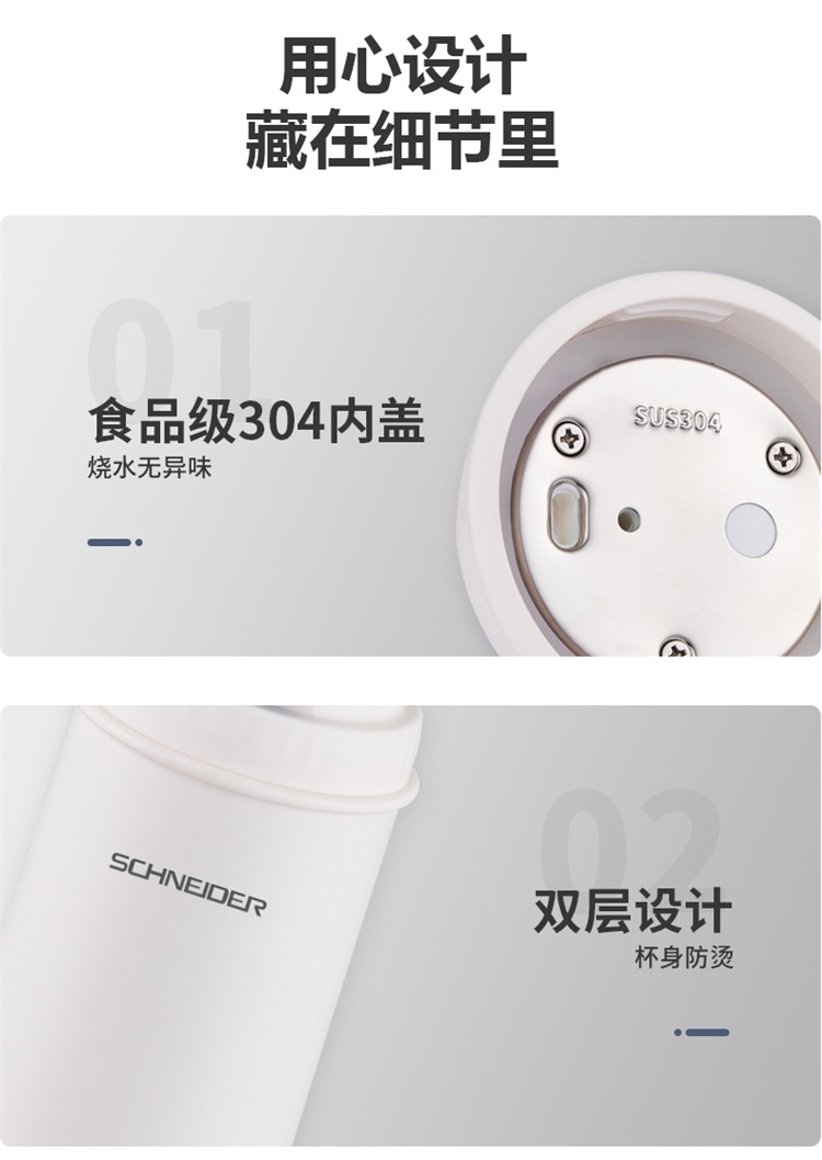 施耐德(SCHNEIDER) 电热水杯 SWK-XRL02 400ml 月光白(单位:台)