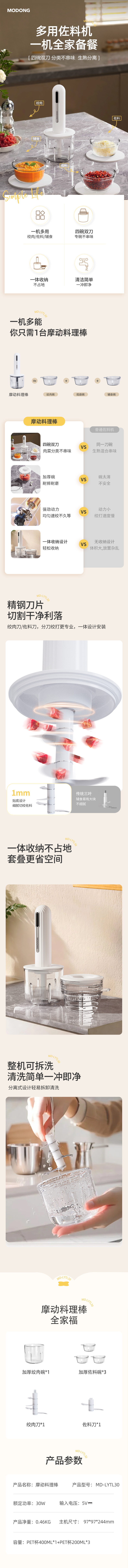 摩动(MODONG) 手持料理棒 MD-LYTL30 30W 白色(单位:台)