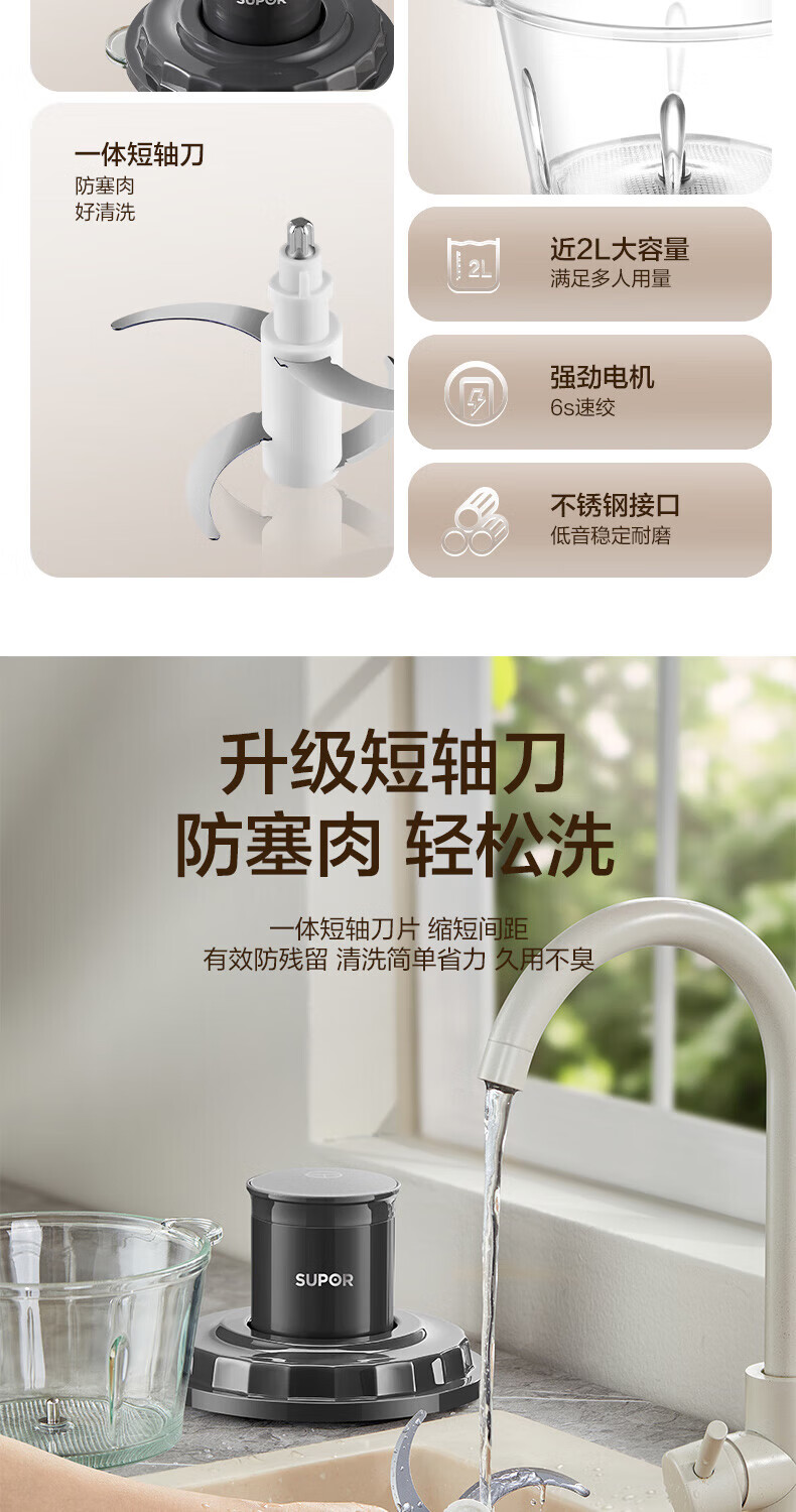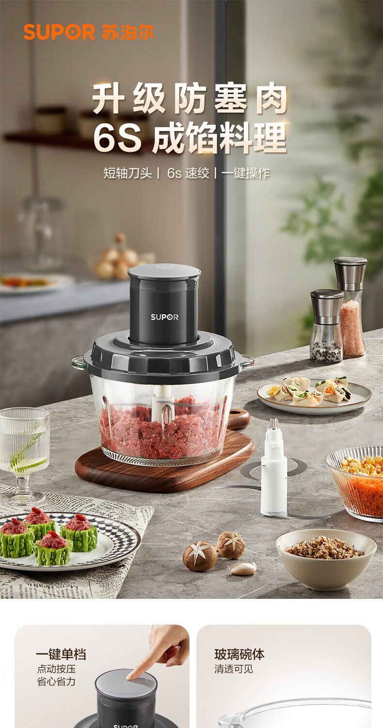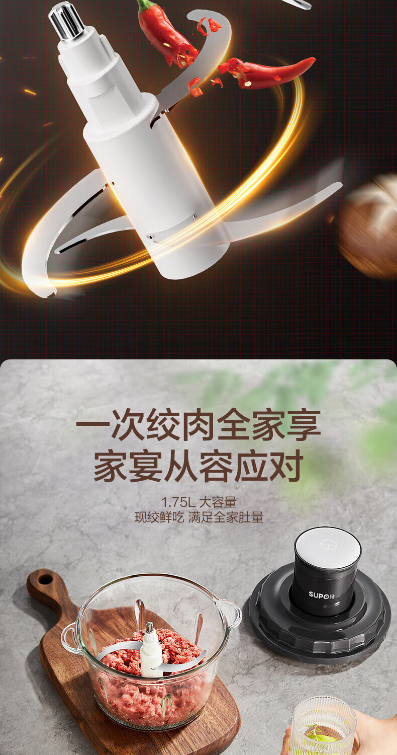 苏泊尔(SUPOR) 绞肉机一体单刀 JR20-B175 1.75L 深空灰(单位:台)