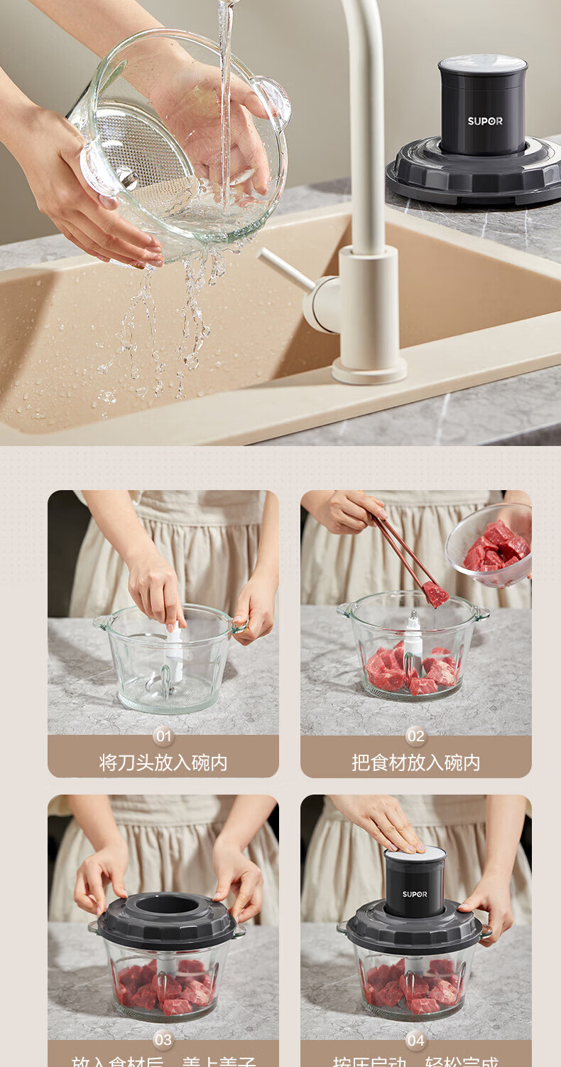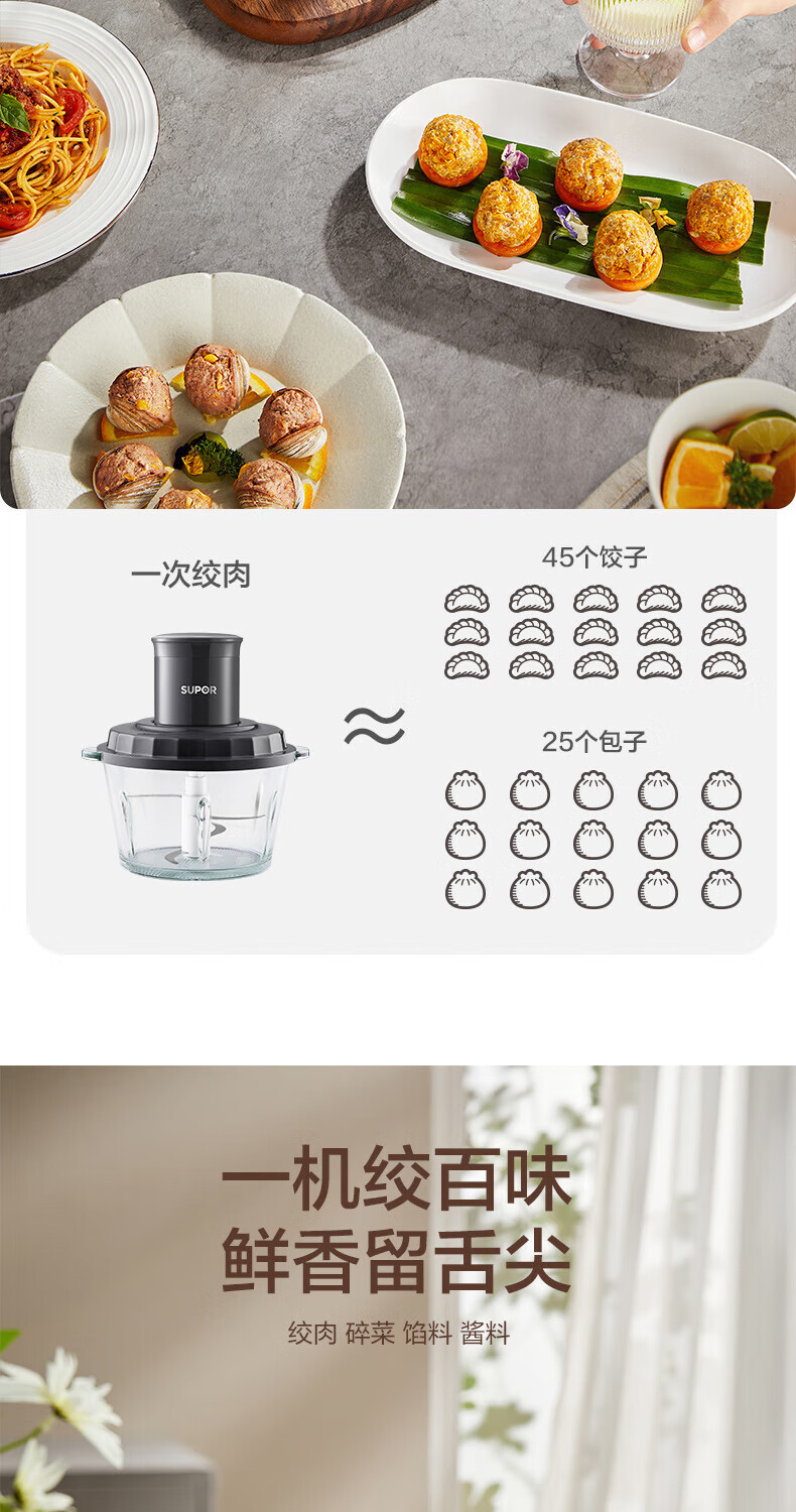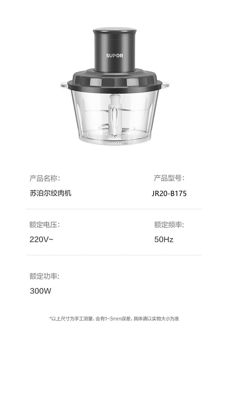 苏泊尔(SUPOR) 绞肉机一体单刀 JR20-B175 1.75L 深空灰(单位:台)
