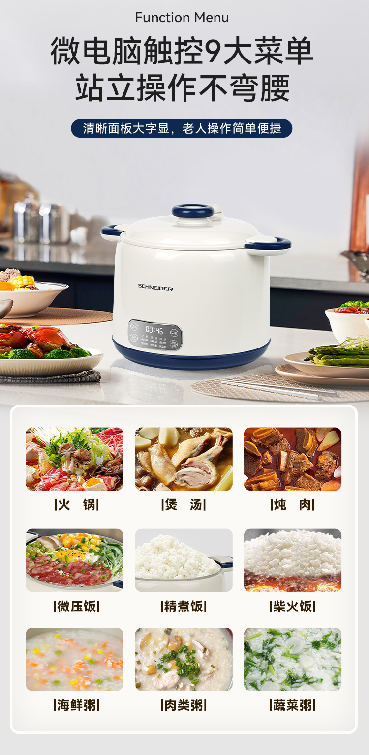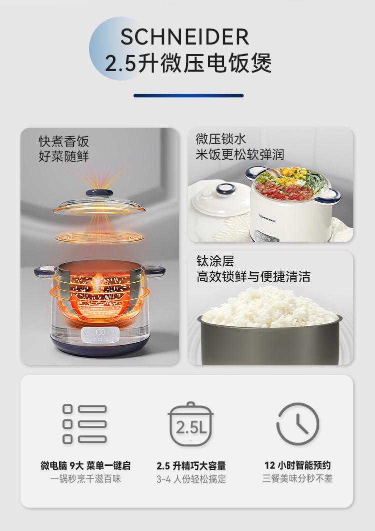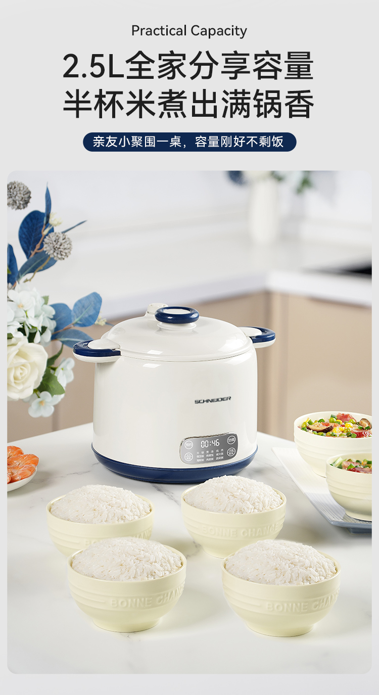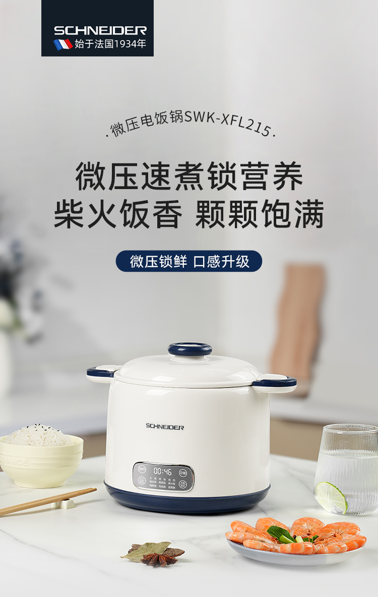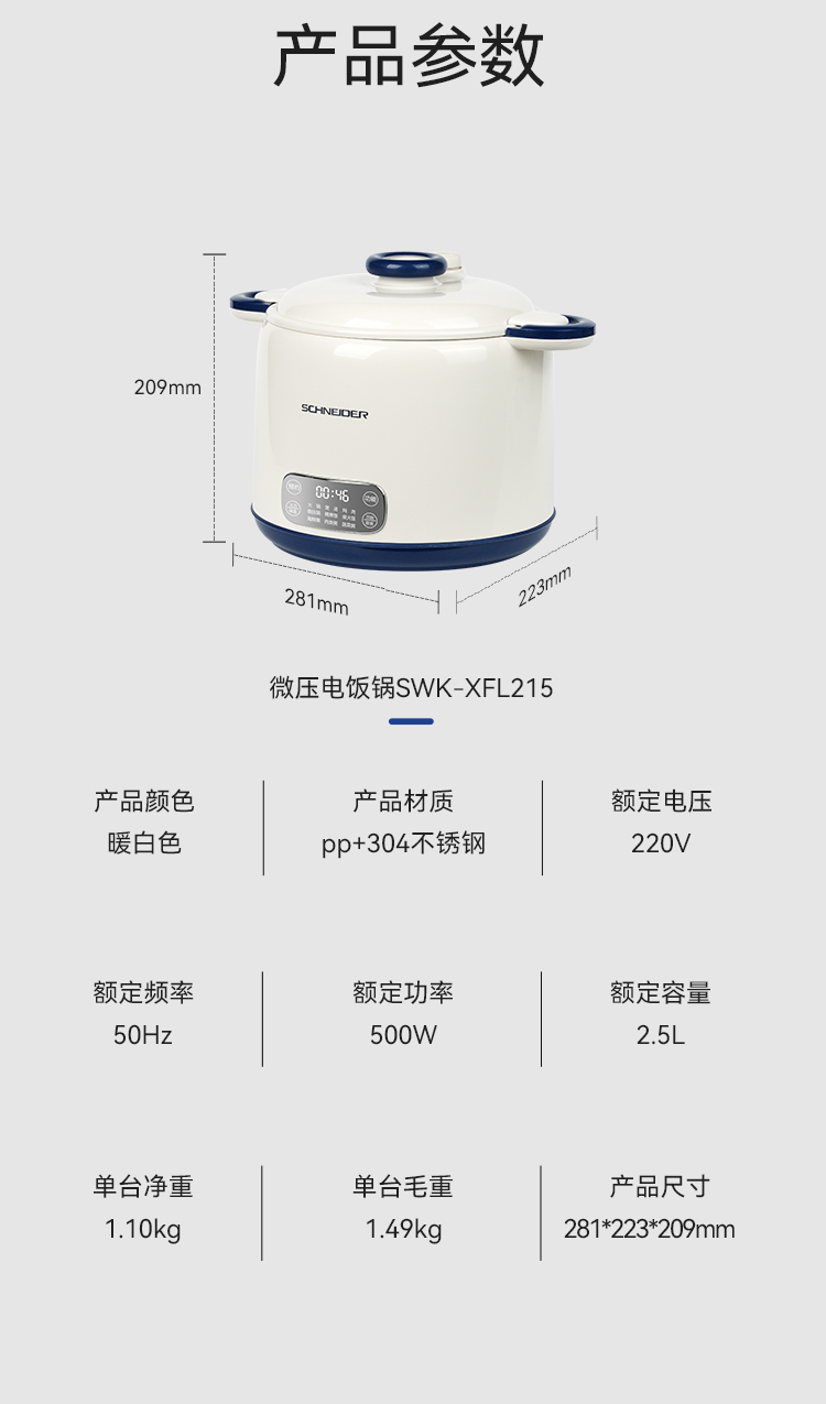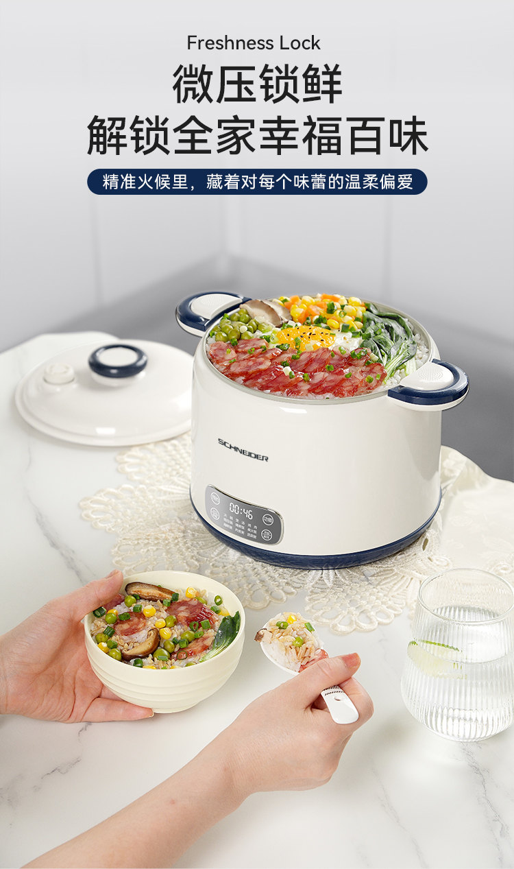 施耐德(SCHNEIDER) 微压电饭锅 SWK-XFL215 2.5L 月光白(单位:台)
