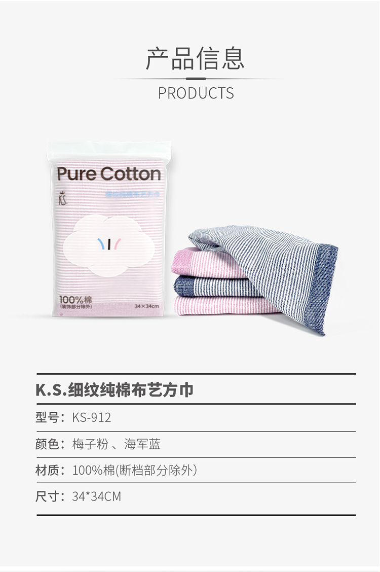 K.S. 细纹纯棉布艺方巾 KS-912 34*34CM 粉色(单位:条)