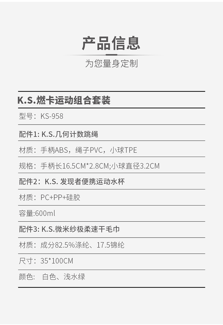 K.S. 燃卡运动组合套装 KS-958 共3件 混色(单位:套)