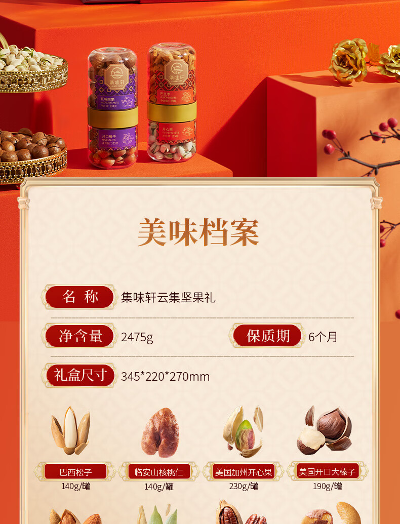 集味轩 礼盒 坚果云集坚果礼 2475g 红色(单位:盒)