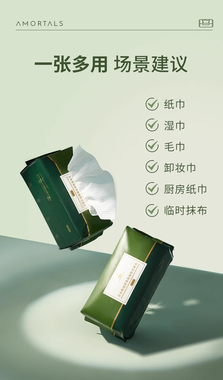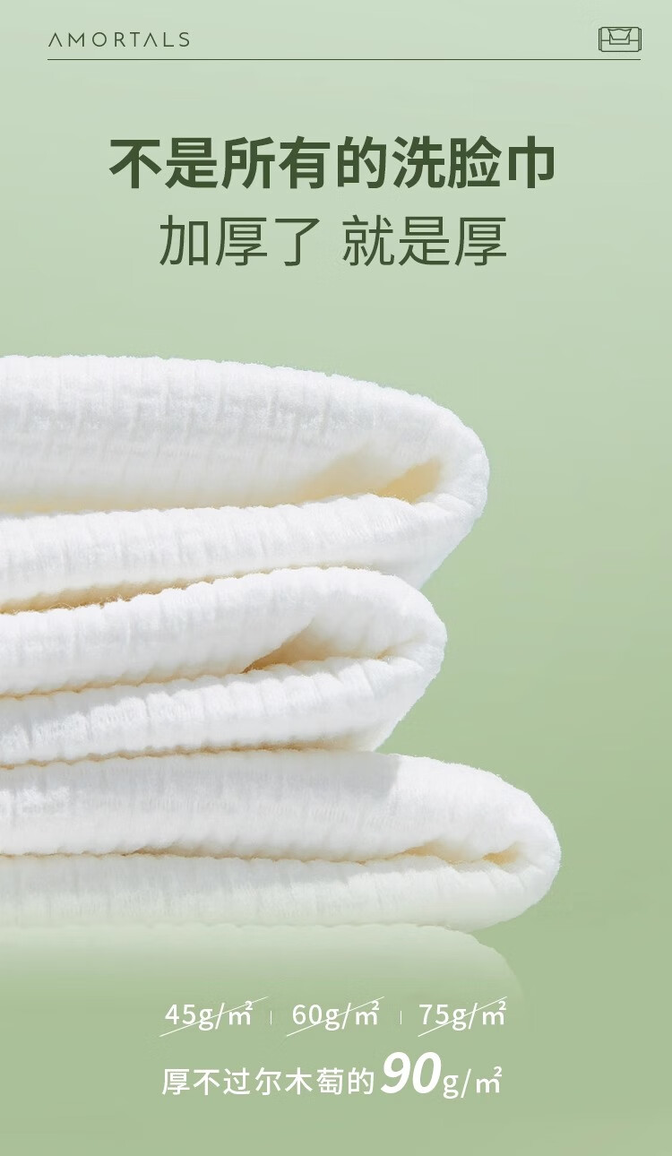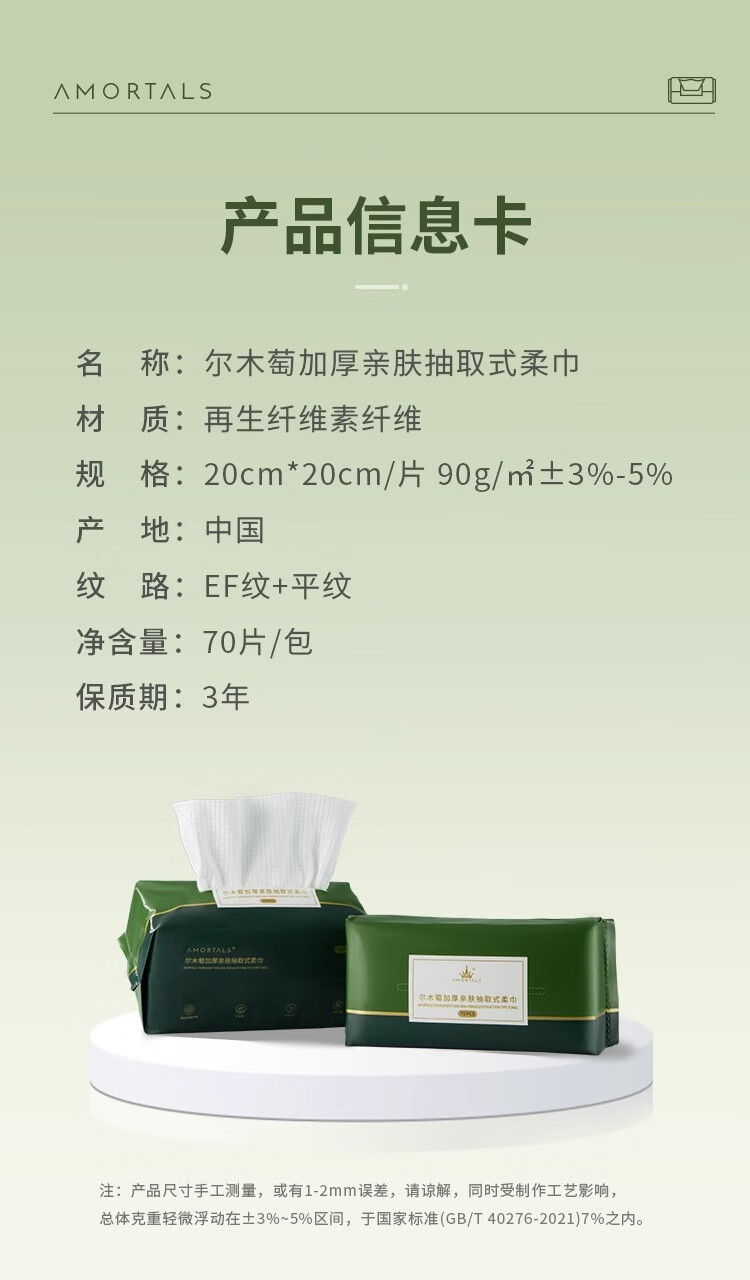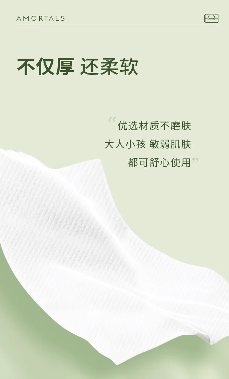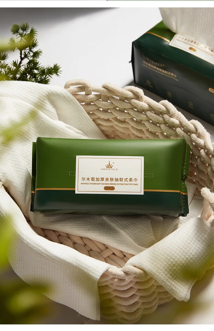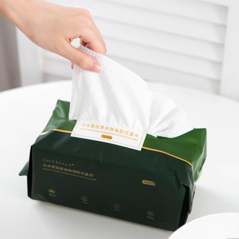 尔木萄(AMORTALS) 抽取式柔巾洗脸巾 emtcqsxlj70 70片*5包 白色(单位:组)