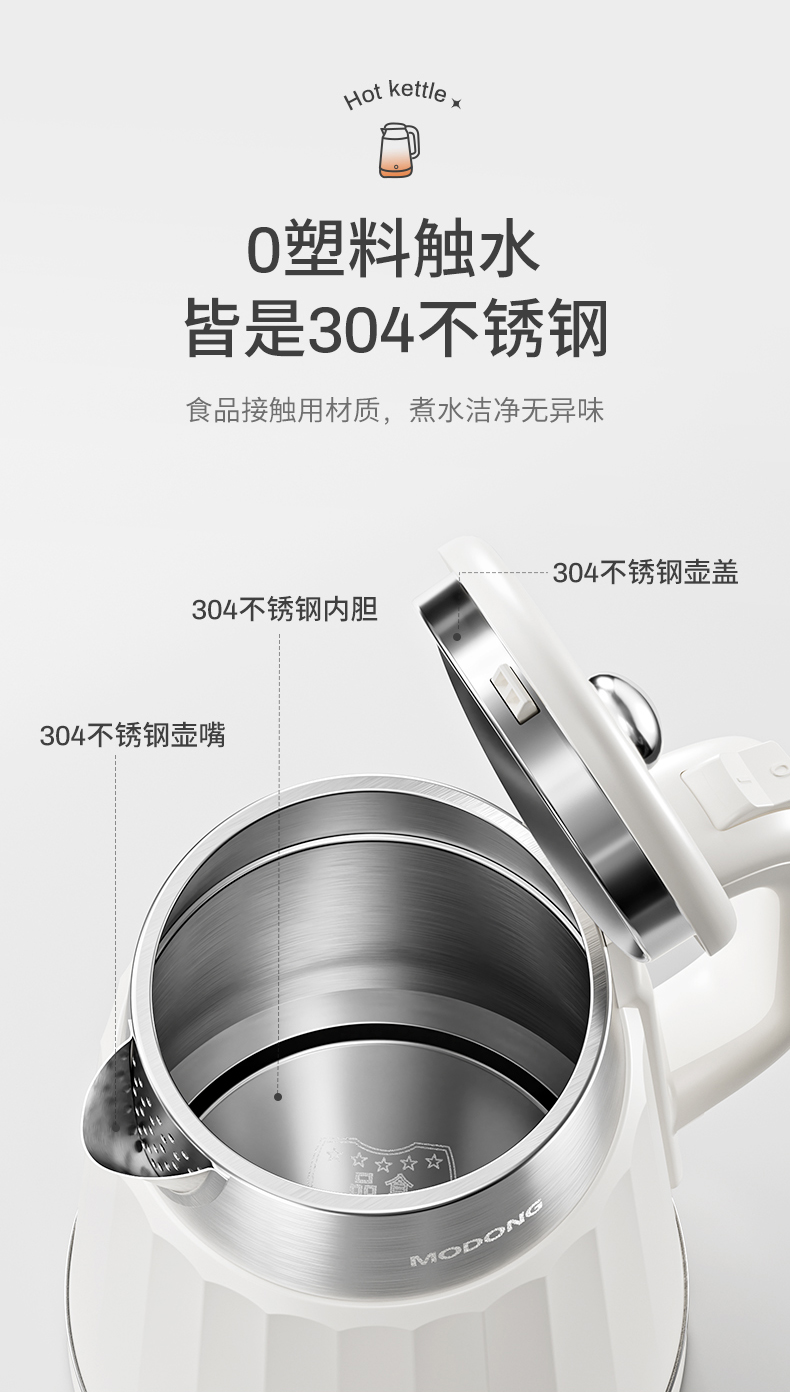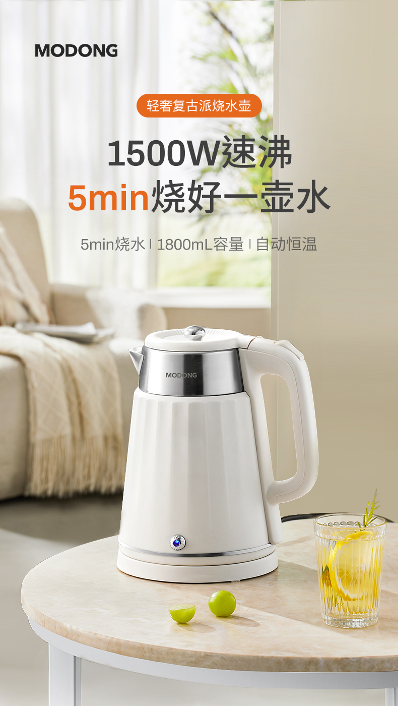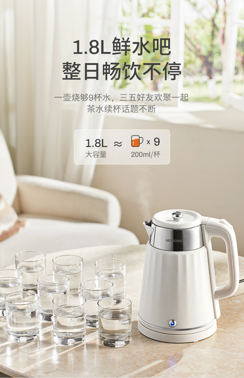 摩动(MODONG) 电热水壶 MD-DSH01W 1.8L 白色(单位:台)
