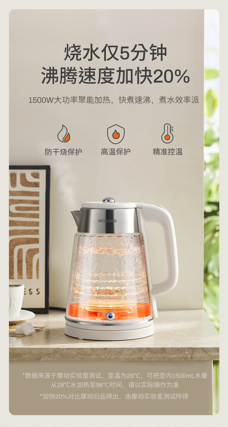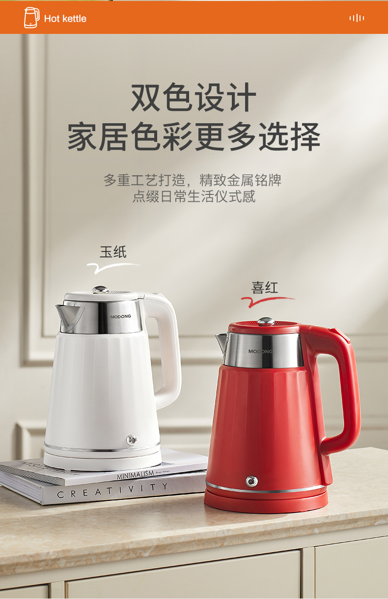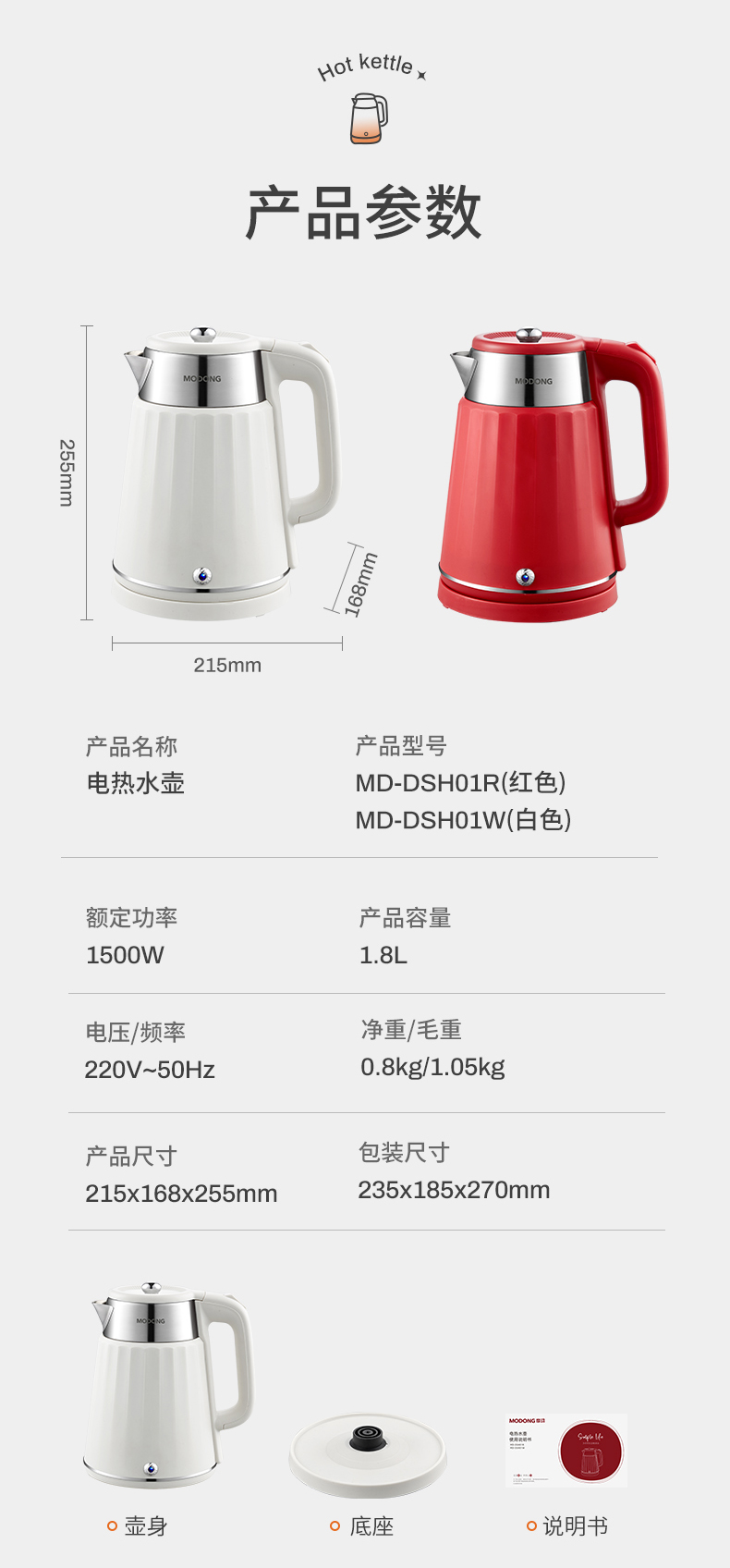 摩动(MODONG) 电热水壶 MD-DSH01W 1.8L 白色(单位:台)