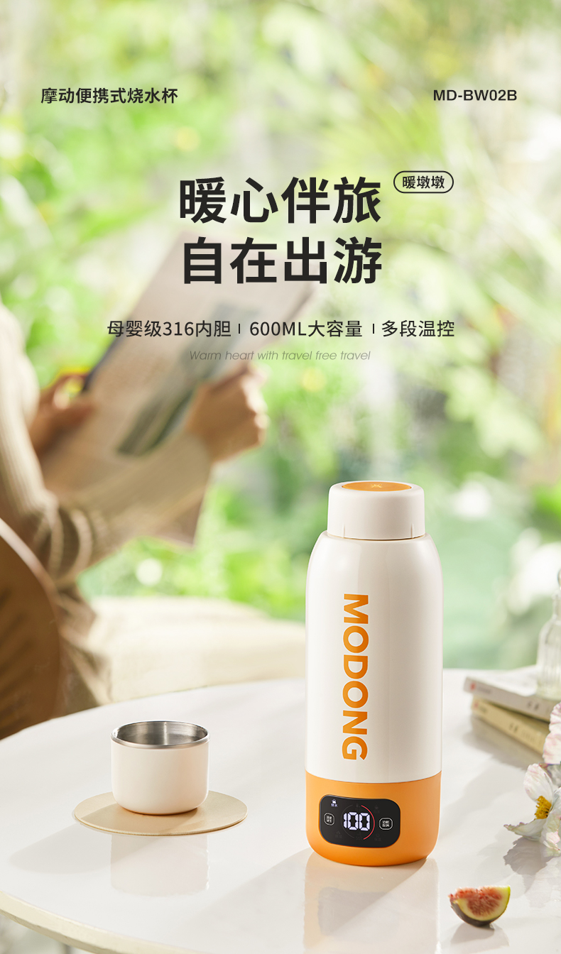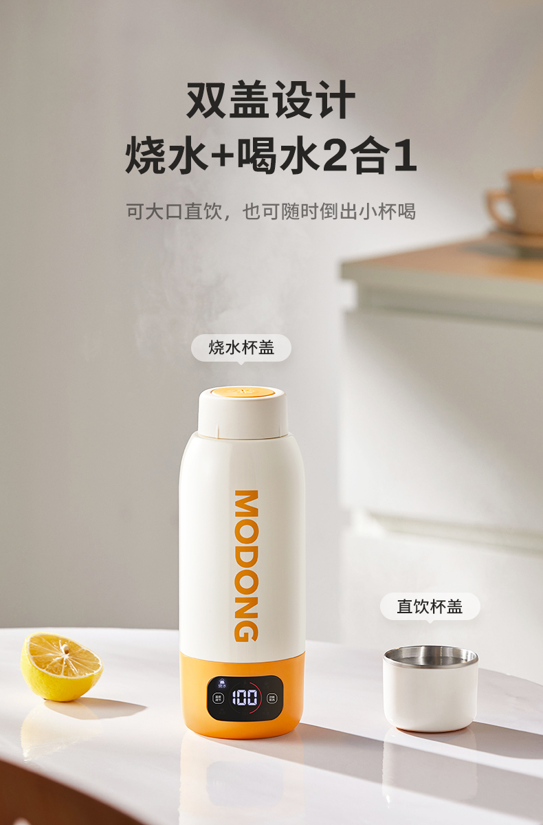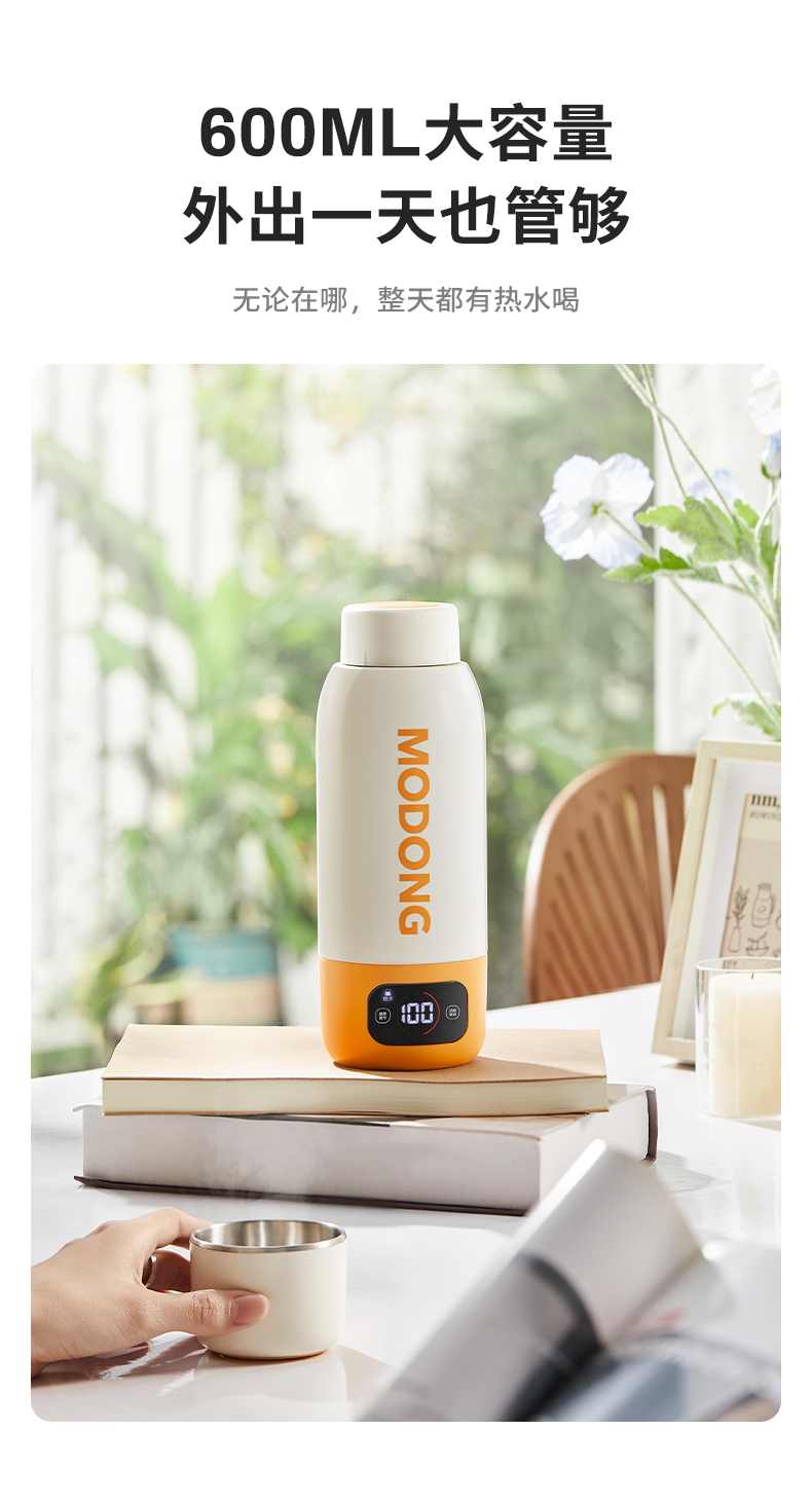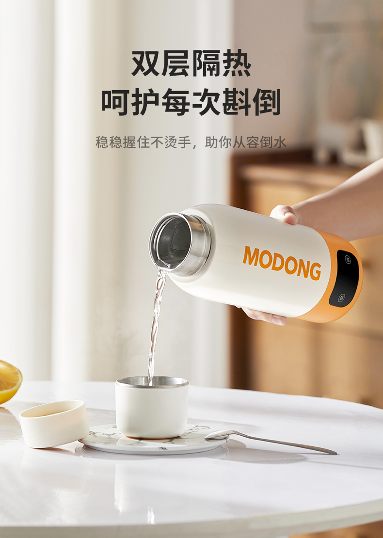 摩动(MODONG) 电热水杯 MD-BW02B 600ml 橙白(单位:台)