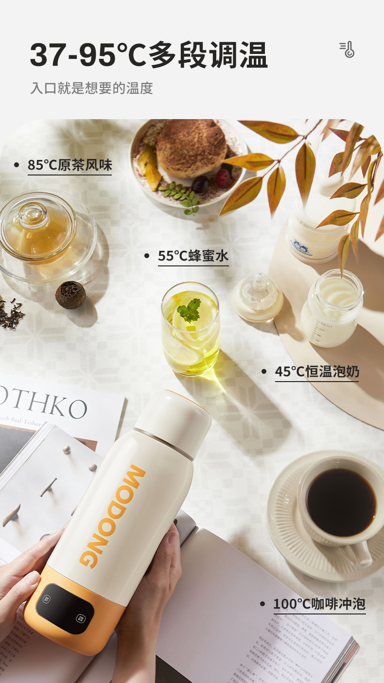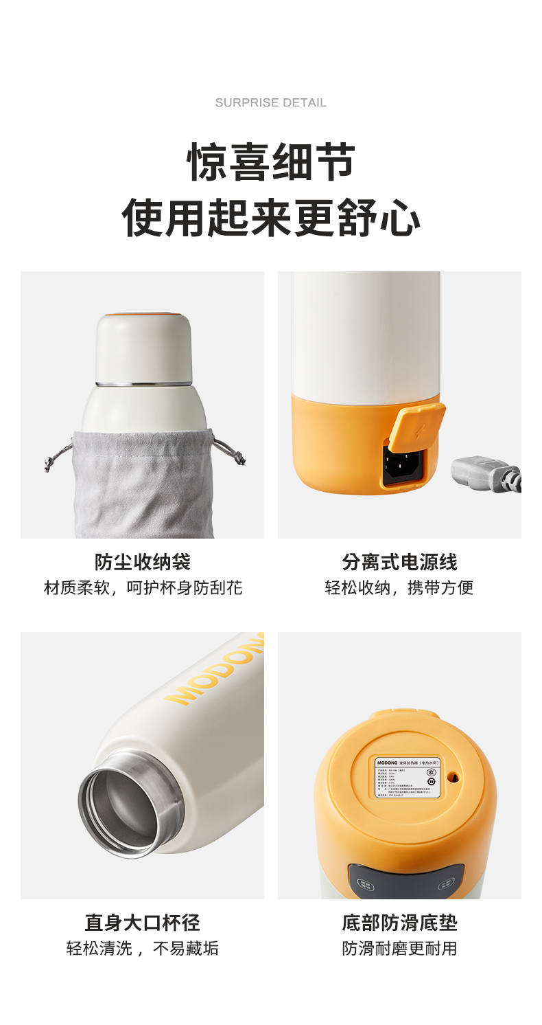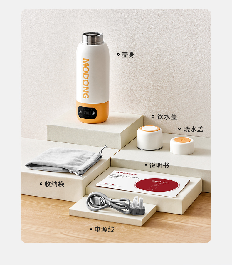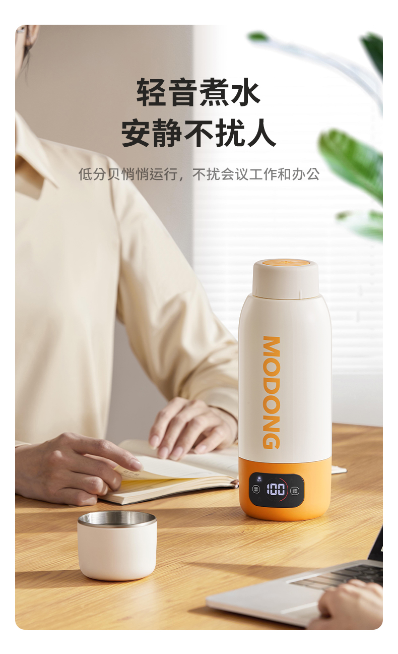 摩动(MODONG) 电热水杯 MD-BW02B 600ml 橙白(单位:台)