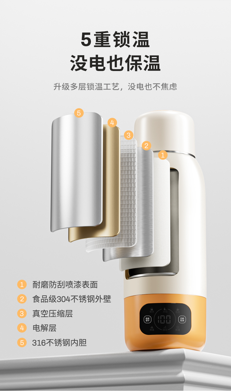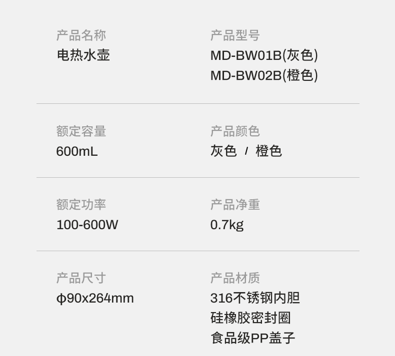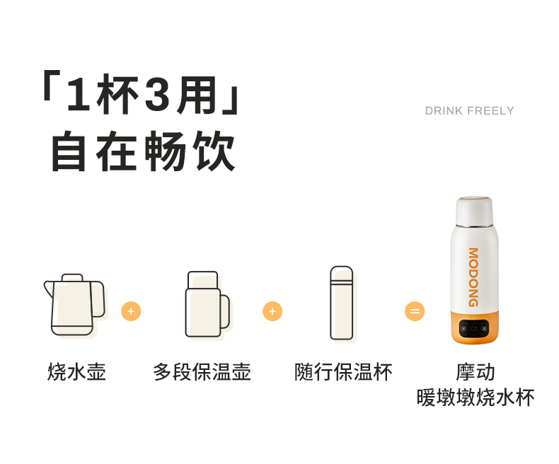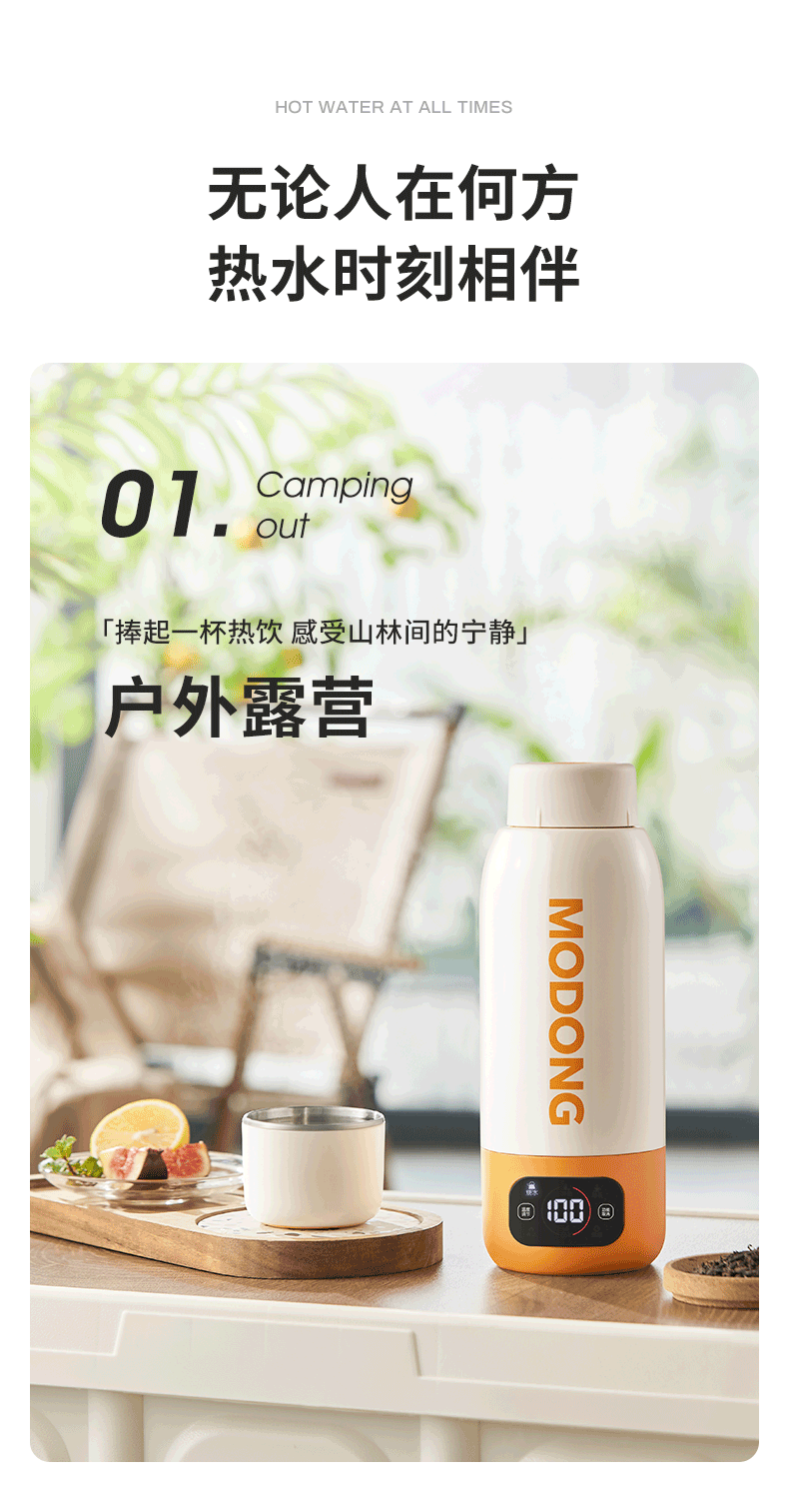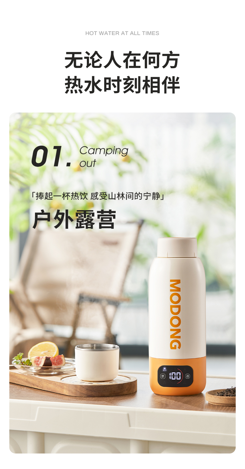 摩动(MODONG) 电热水杯 MD-BW02B 600ml 橙白(单位:台)