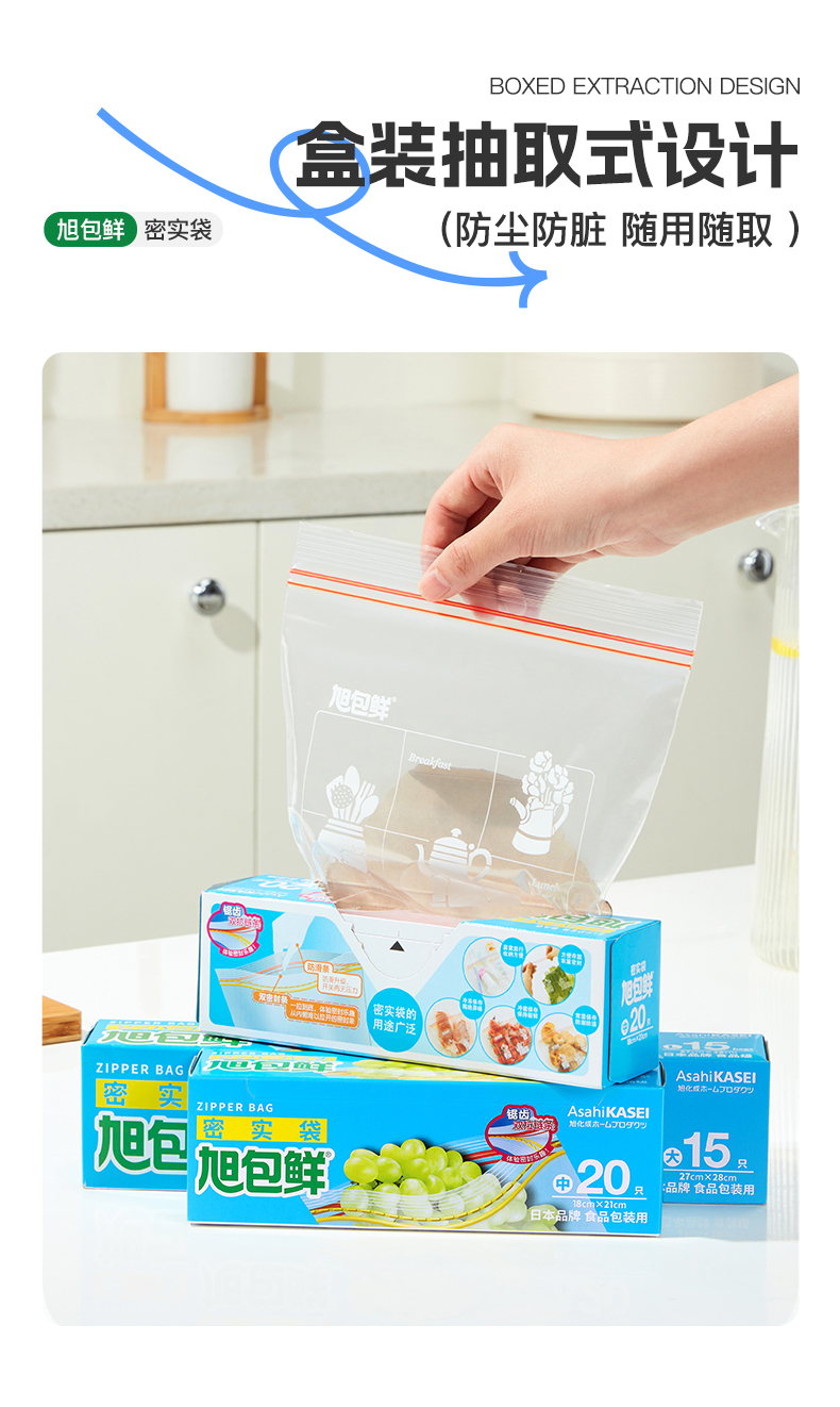 旭包鲜 ®密实袋18cm×21cm 中号 20只装*5包 透明色(单位:组)