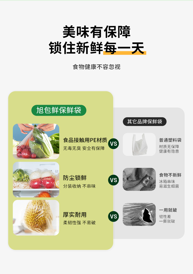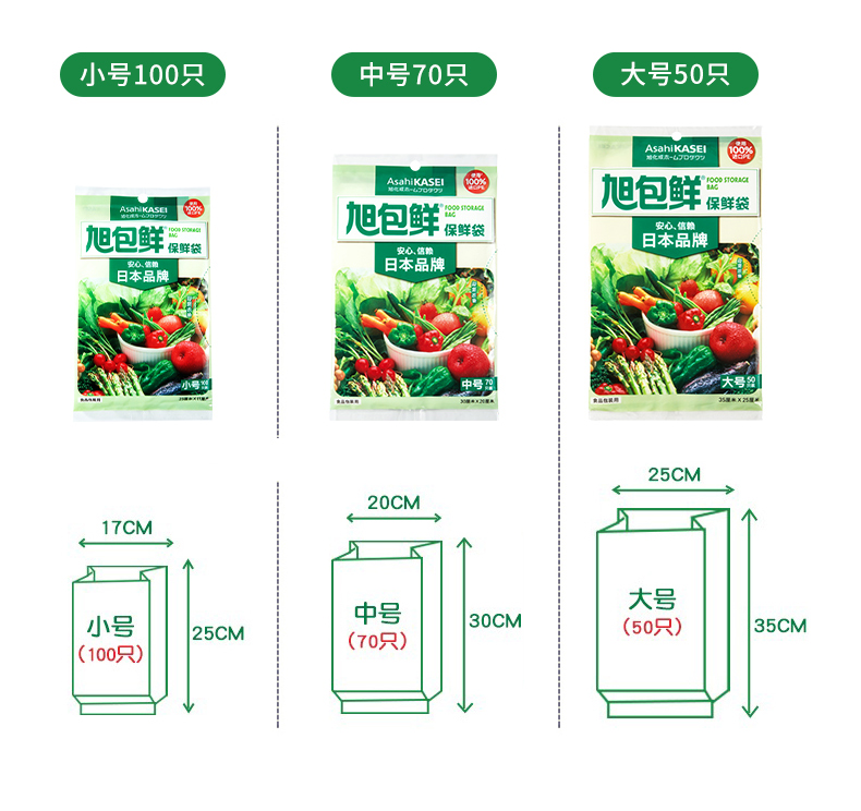 旭包鲜 ®保鲜袋 大号 35cm×25cm50只装*5包 透明色(单位:组)
