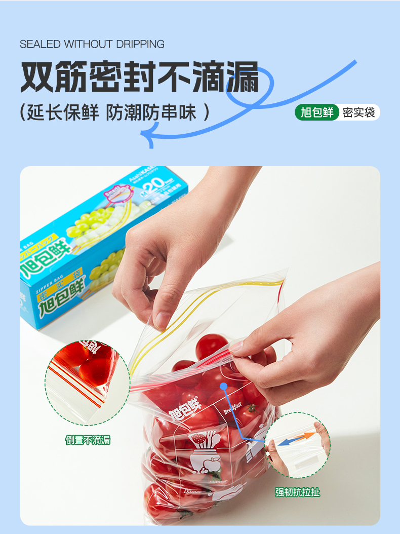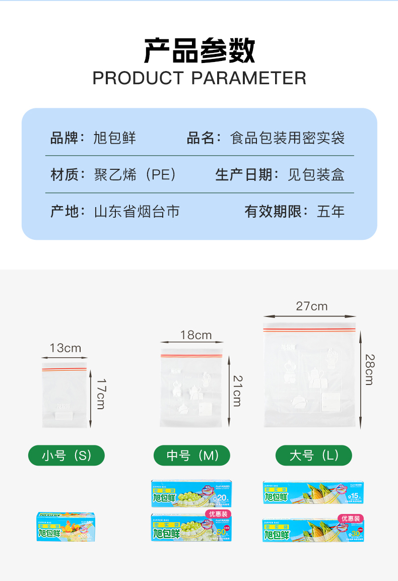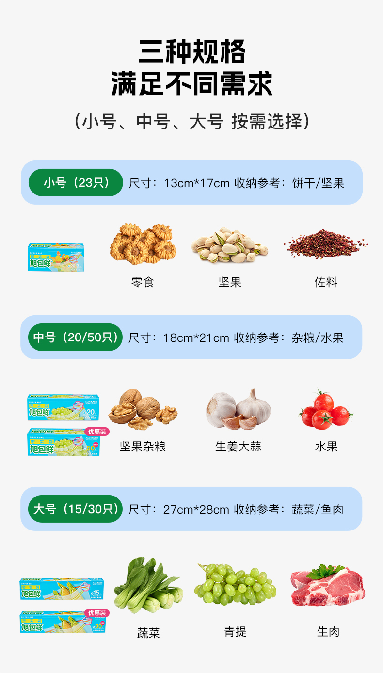 旭包鲜 ®密实袋13cm×17cm 小号 23只装*5包 透明色(单位:组)