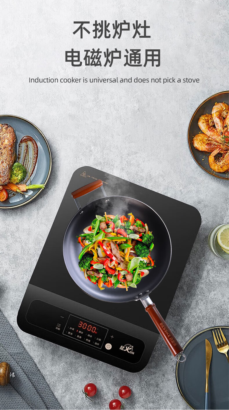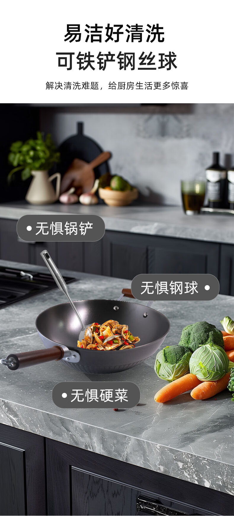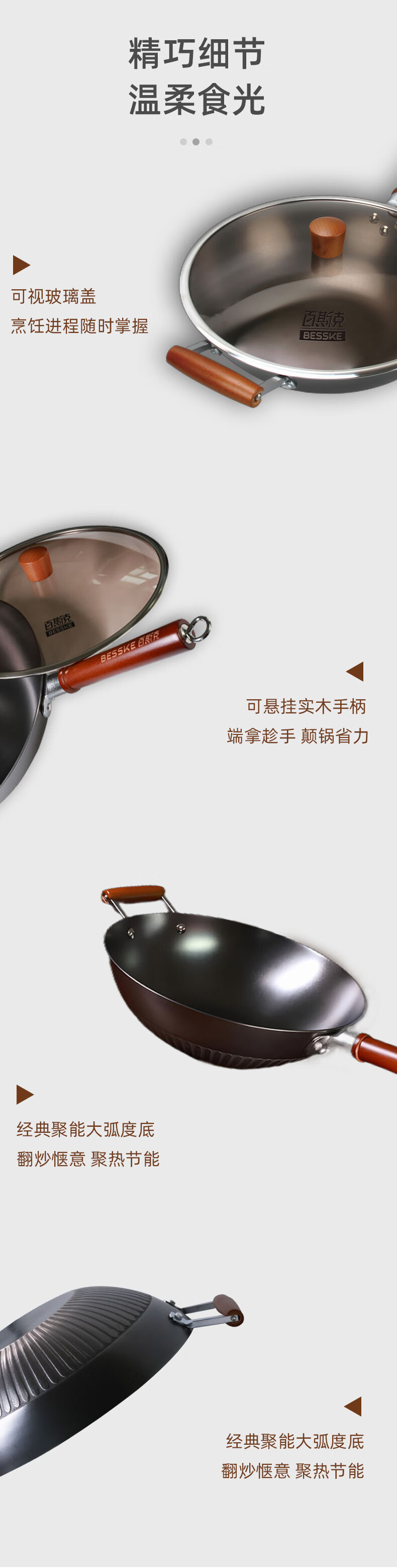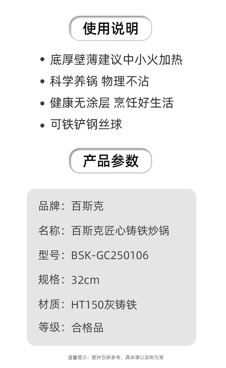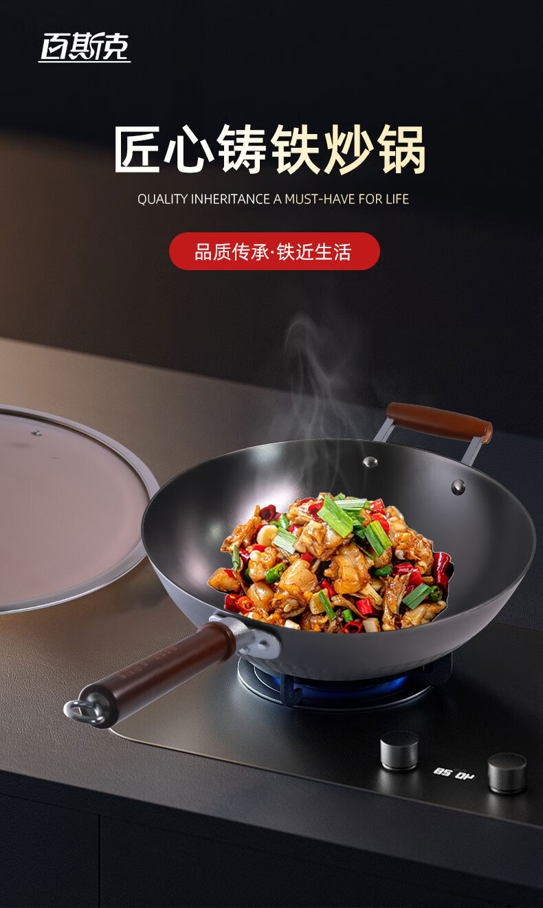 百斯克 匠心铸铁炒锅 BSK-GC250106 32cm 铁灰色(单位:个)