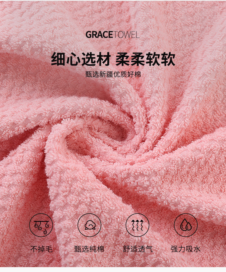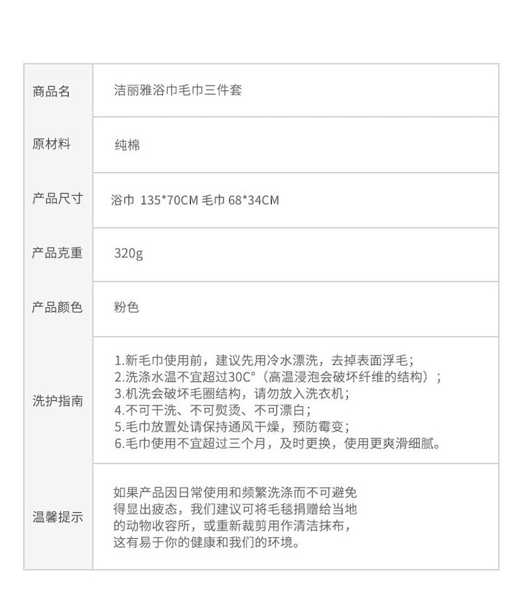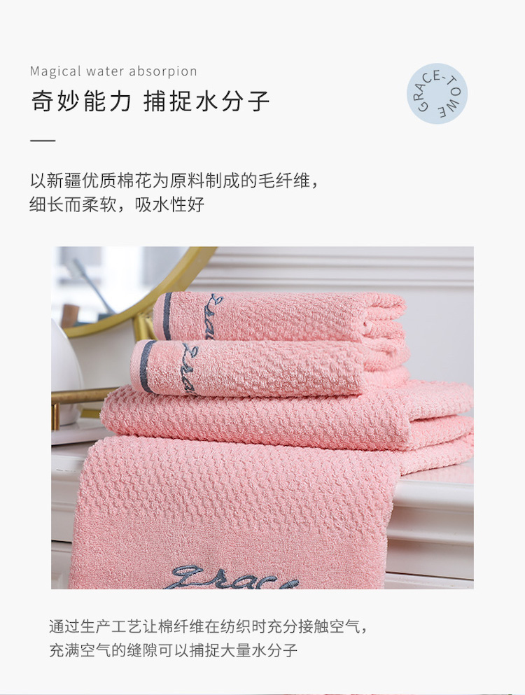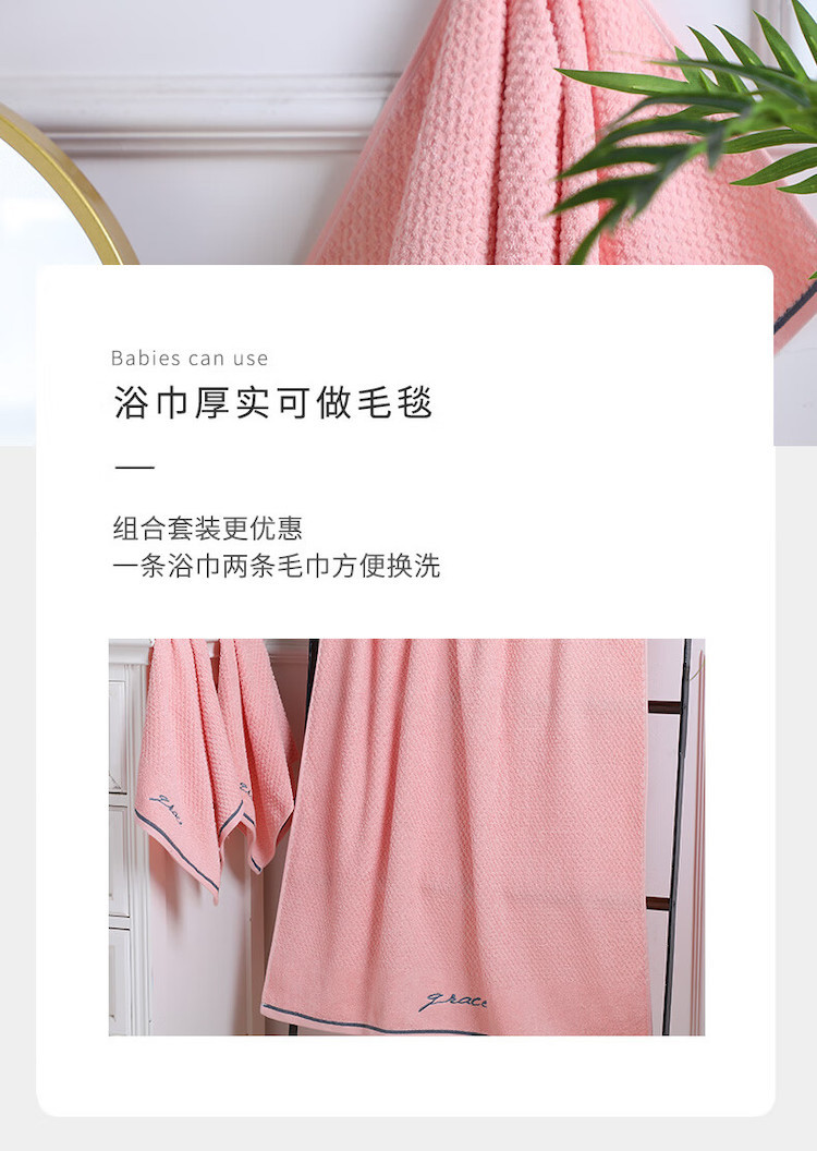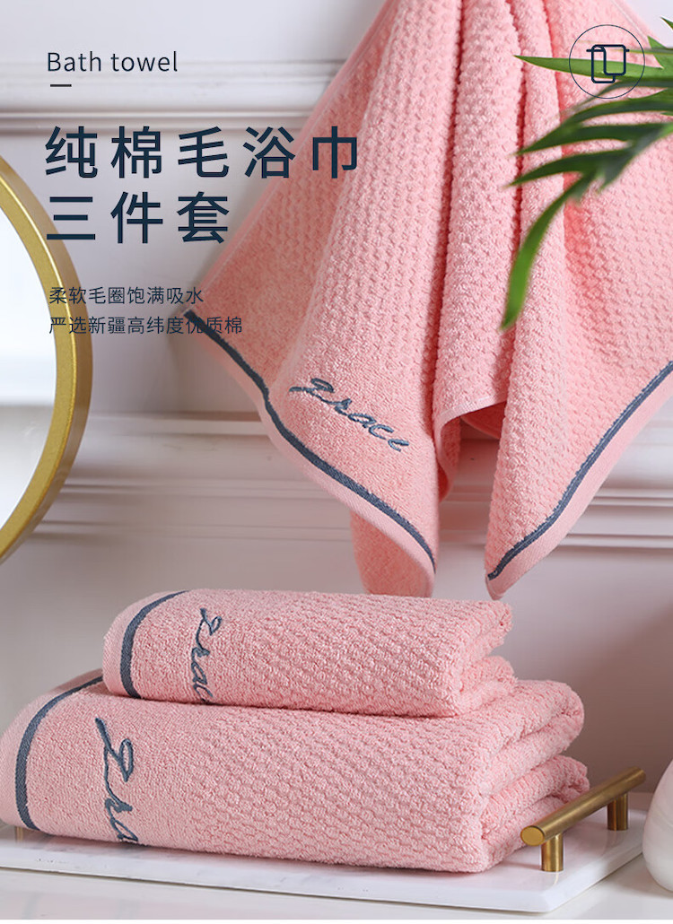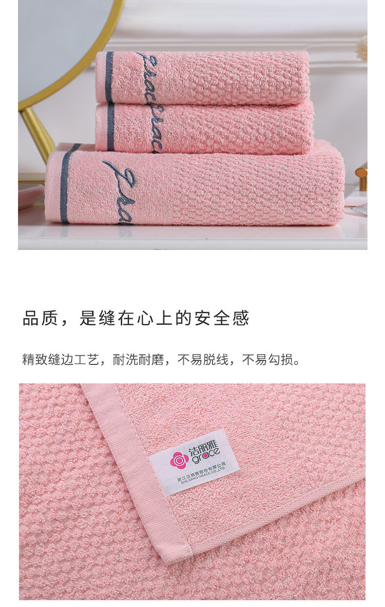 洁丽雅(Grace) 浴巾+毛巾 家用A类纯棉组合装 3件套 粉色(单位:套)