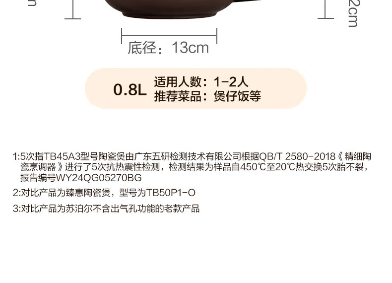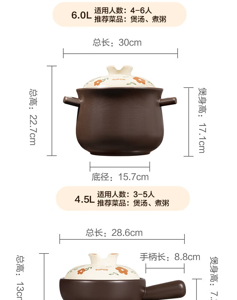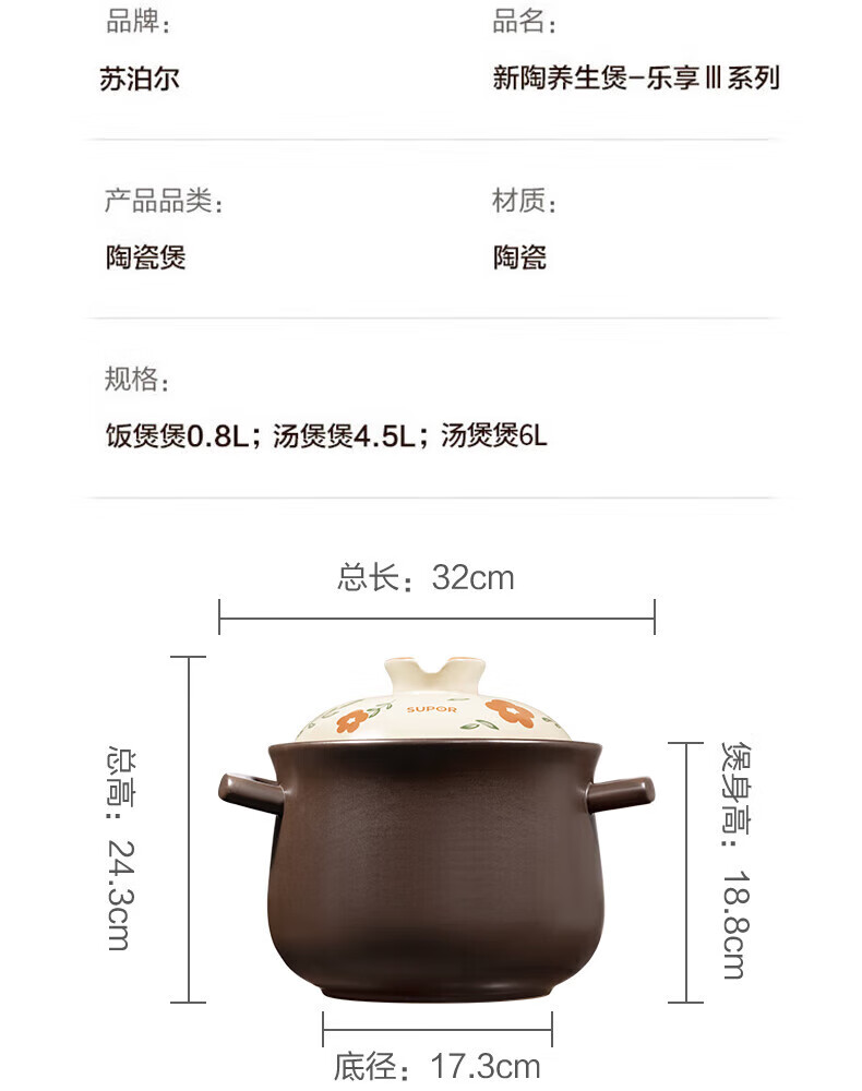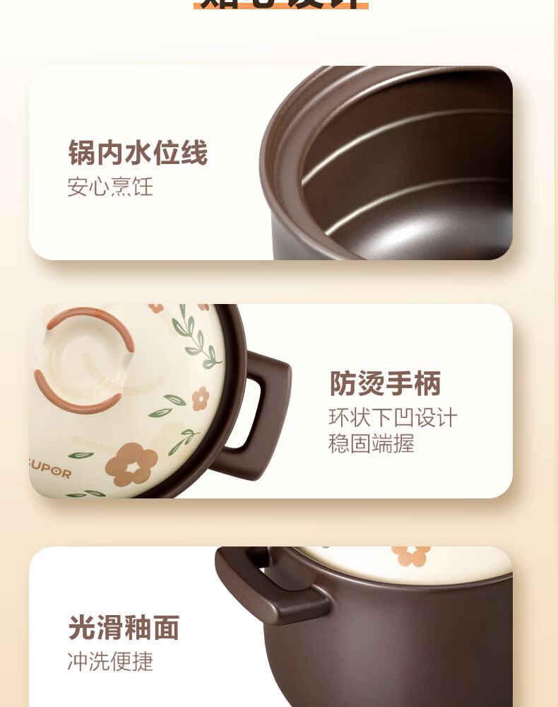 苏泊尔(SUPOR) 新陶养生煲·乐享Ⅲ系列·汤煲煲 TB45A3 4.5L 褐色(单位:个)