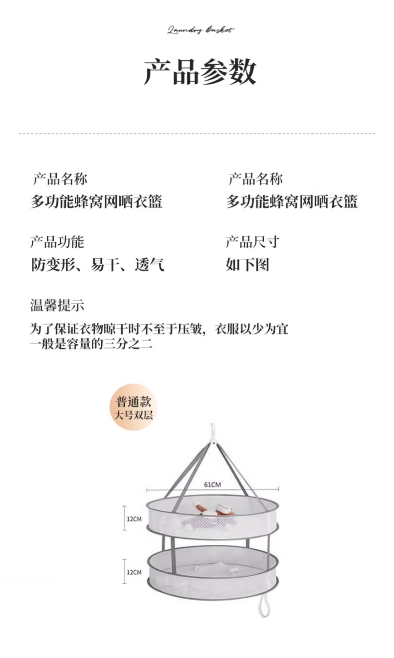 优勤(YOUQIN) 圆形晒衣网有围栏-双层大号 JR-YXSYWYWL-HSSCDH61*80#-1009N 61*80cm 灰色(单位:个)