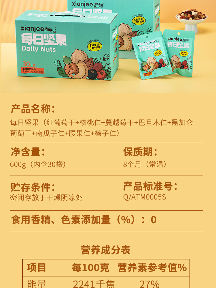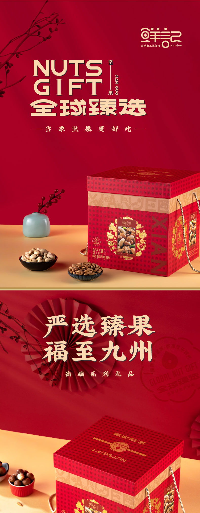 鲜记 休闲零食 大礼包 全球臻选礼盒2.28kg,每日坚果600g 混色(单位:组)