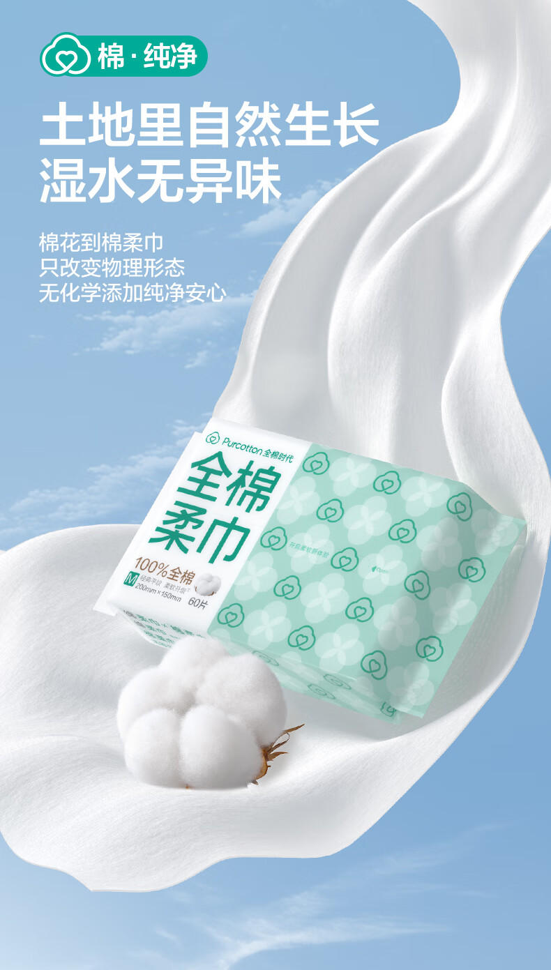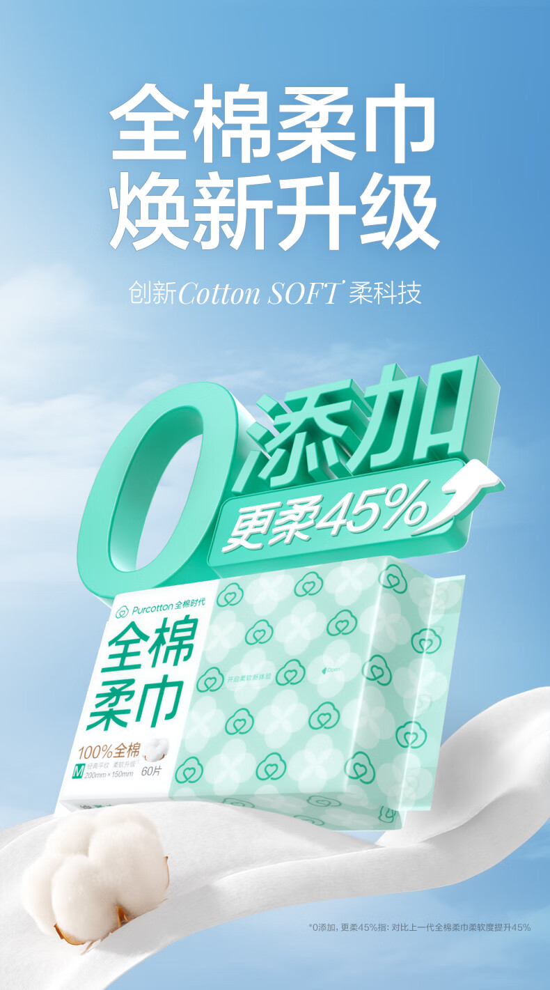 全棉时代 棉柔巾 M码 60片3连包 白色(单位:提)