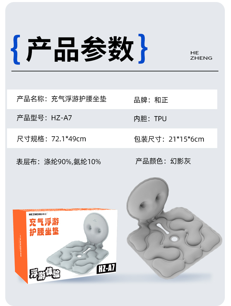和正(HEZHENG) 充气浮游腰靠垫 HZ-A7 72.1*49cm 幻影灰(单位:个)