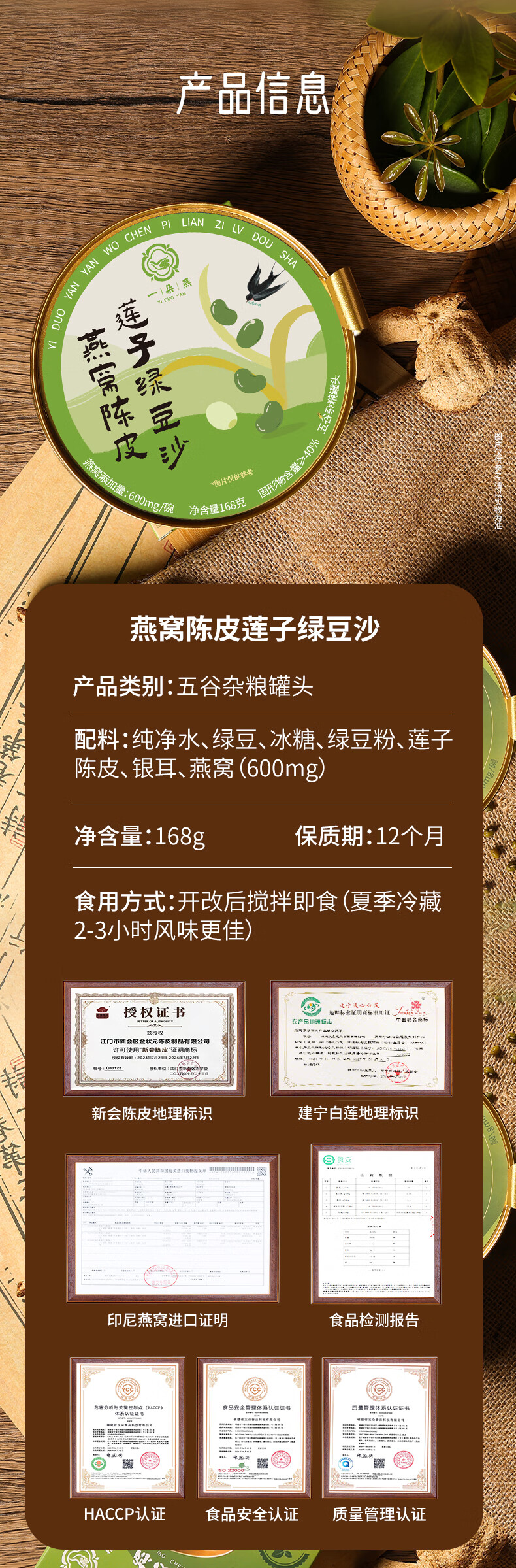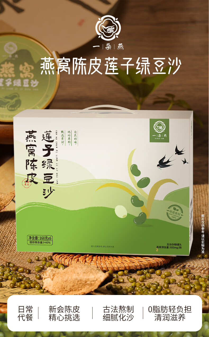 一朵燕(YIDUOYAN) 燕窝陈皮莲子绿豆沙 礼盒装 1008克(6碗*168g) 绿色(单位:箱)