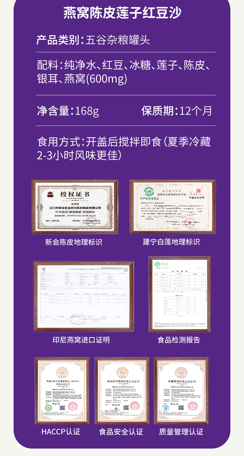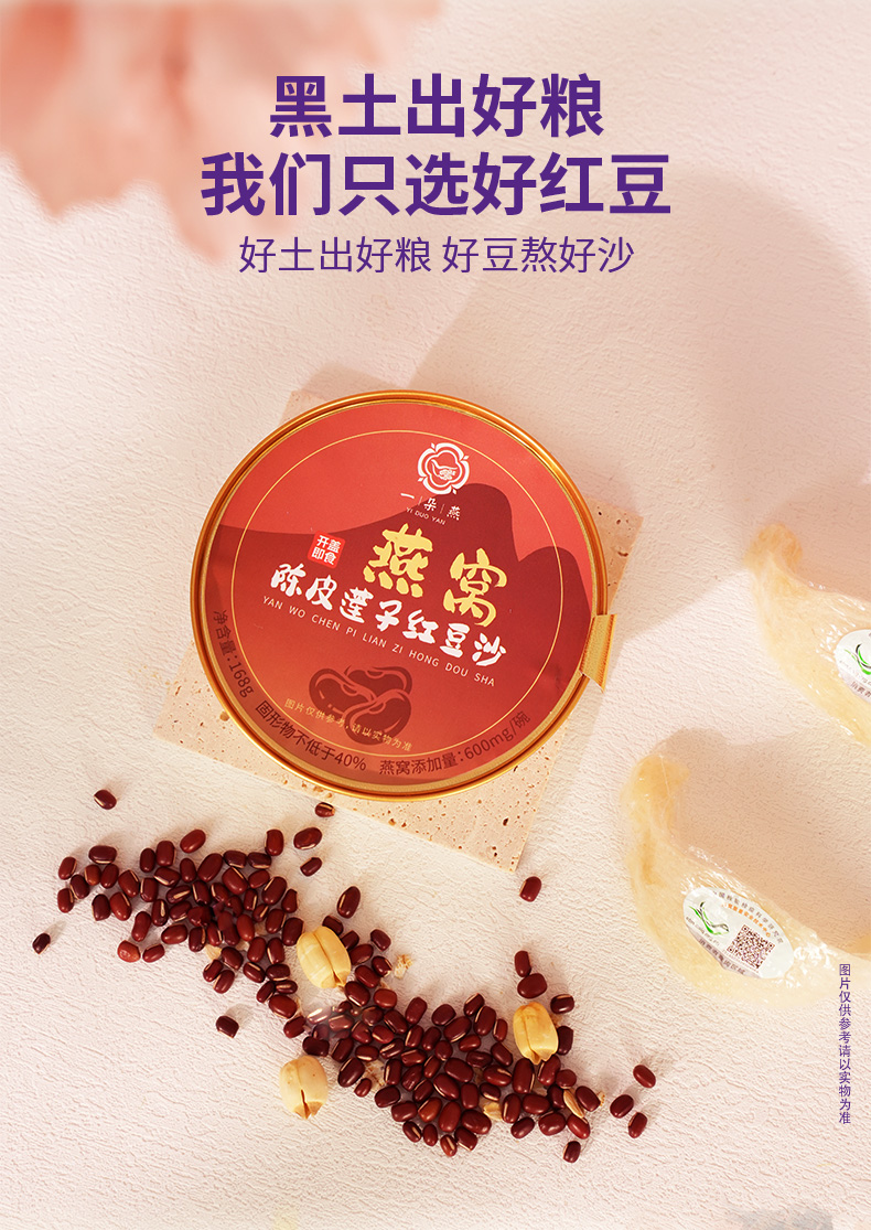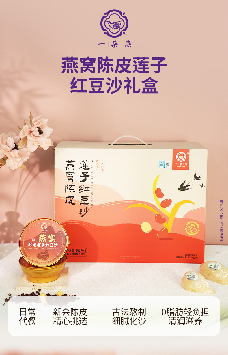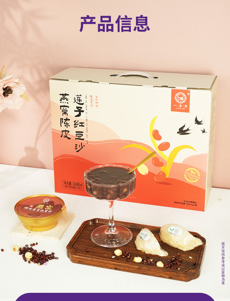 一朵燕(YIDUOYAN) 燕窝陈皮莲子红豆沙 礼盒装 1008克(168克*6碗) 灰橙色(单位:盒)