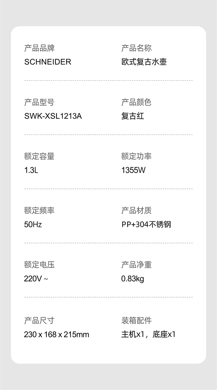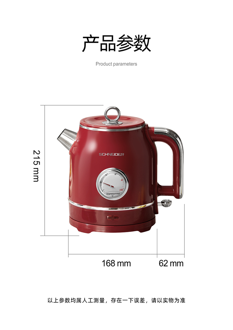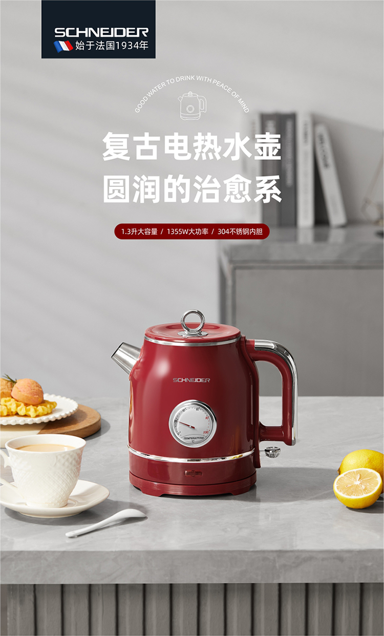 施耐德(SCHNEIDER) 电水壶 SWK-XSL1213A 1.3L 红色(单位:个)