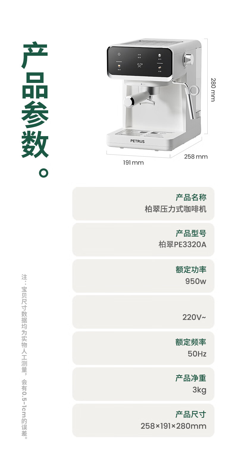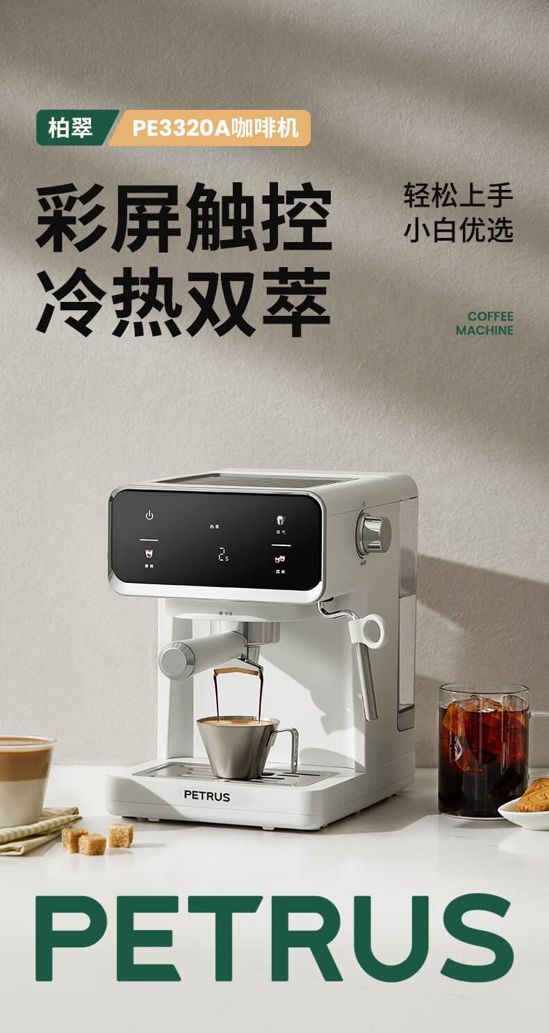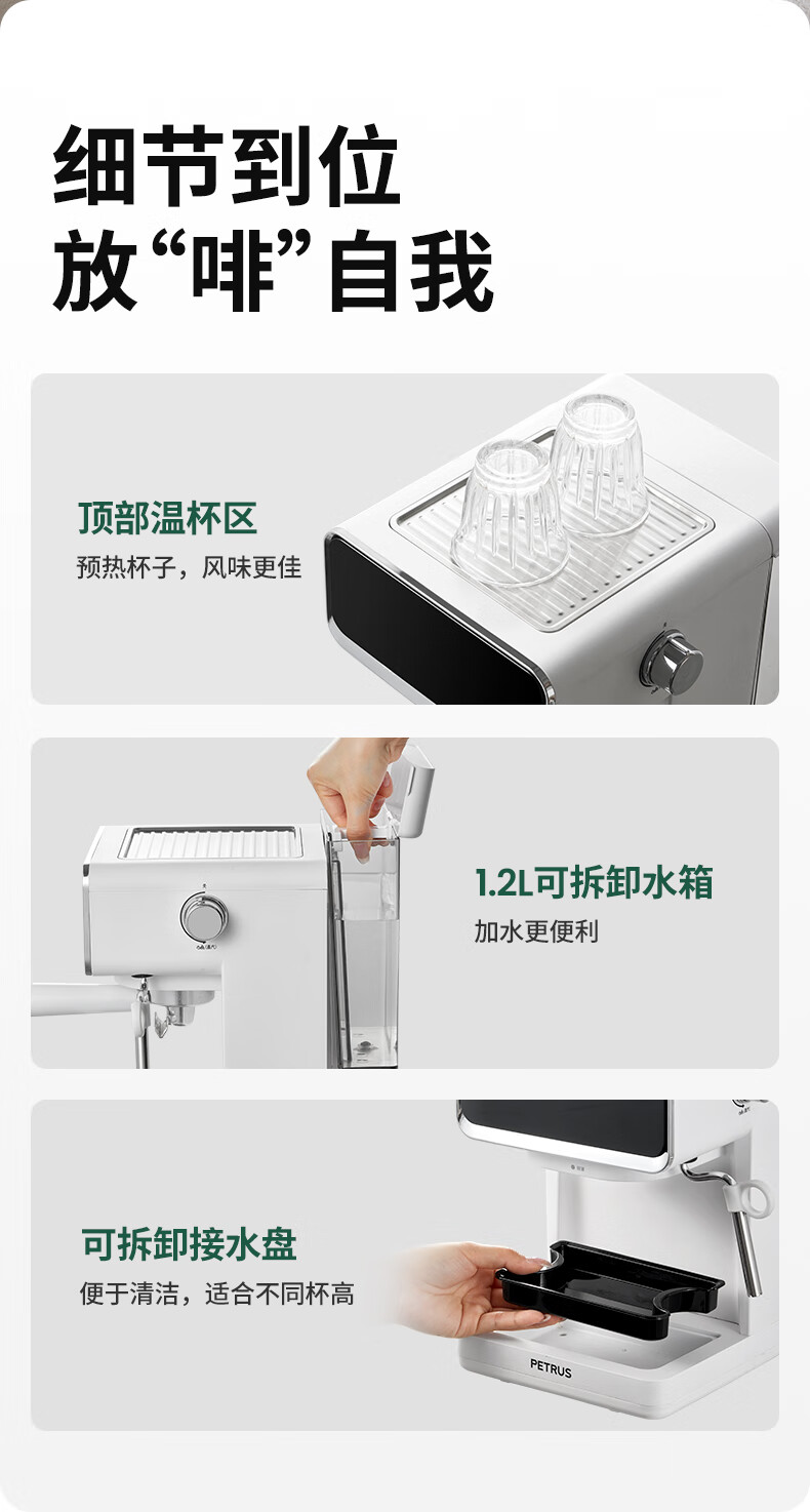 柏翠(petrus) 压力式咖啡机 PE3320A 258*191*280mm 白色(单位:台)