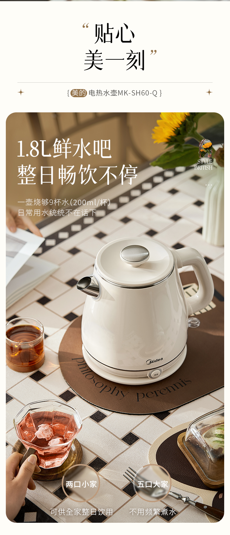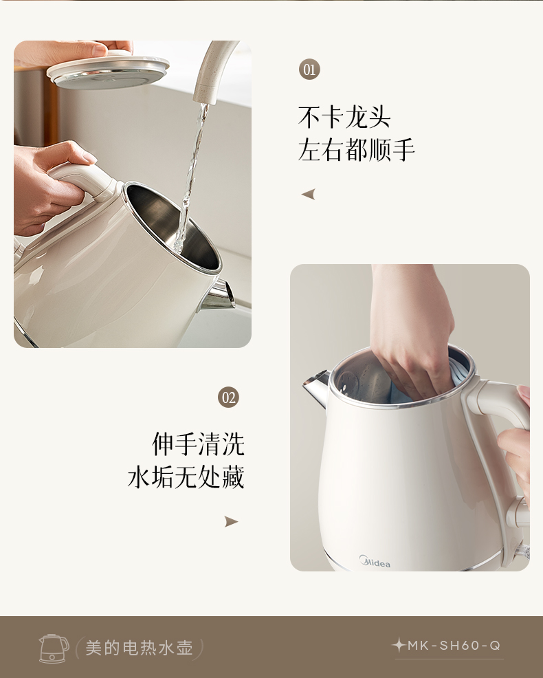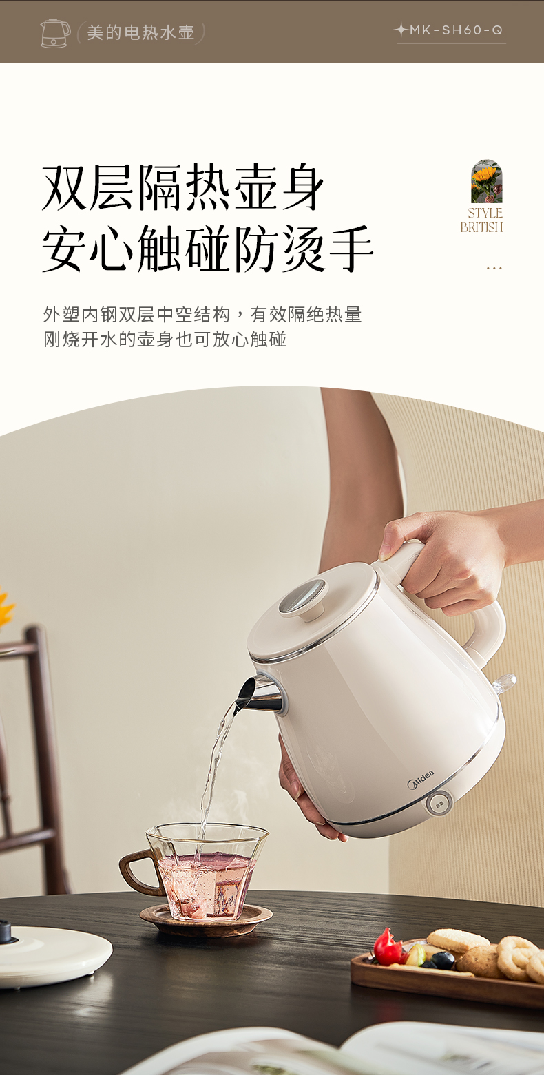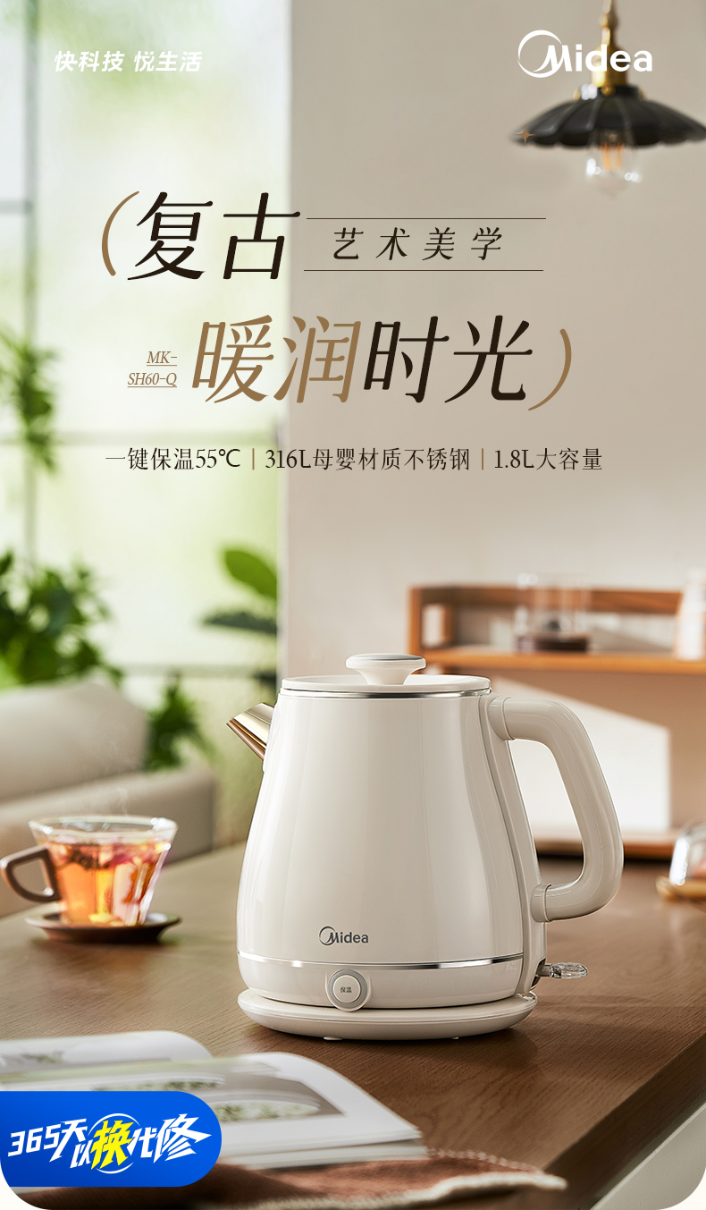 美的(Midea) 电热水壶 MK-SH60-Q 1.8L 白色(单位:台)