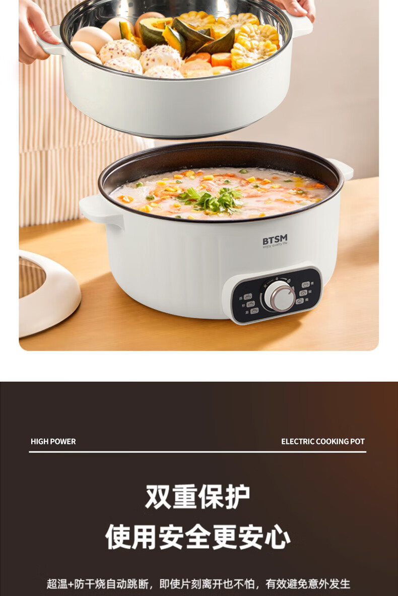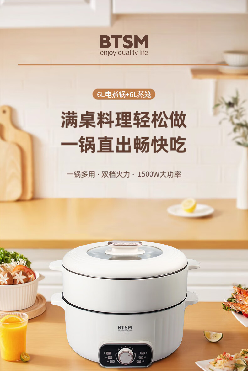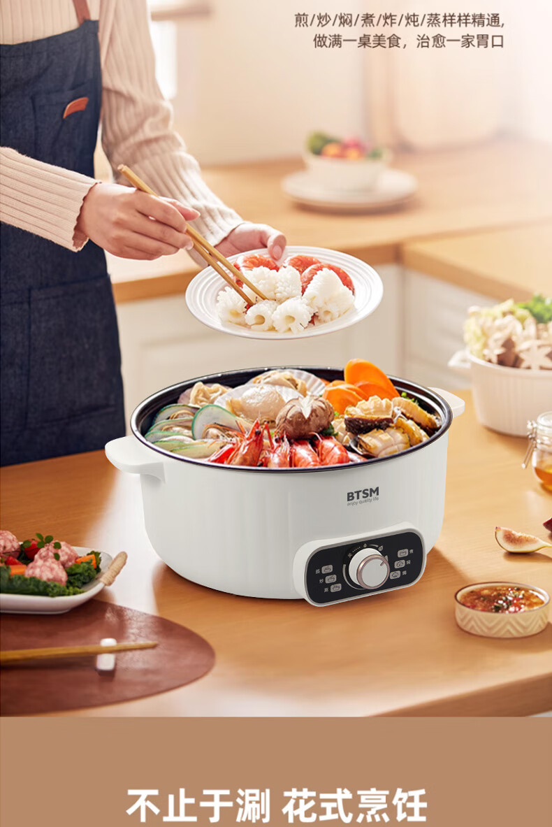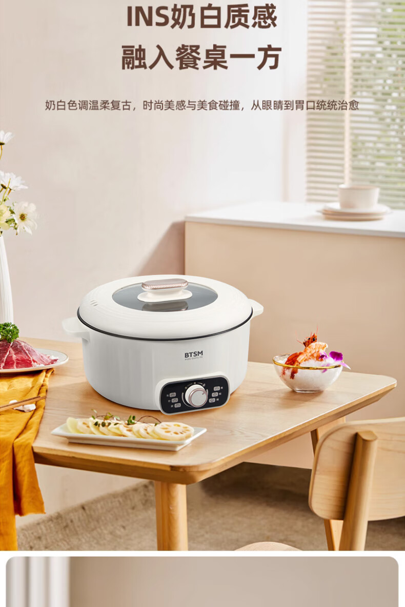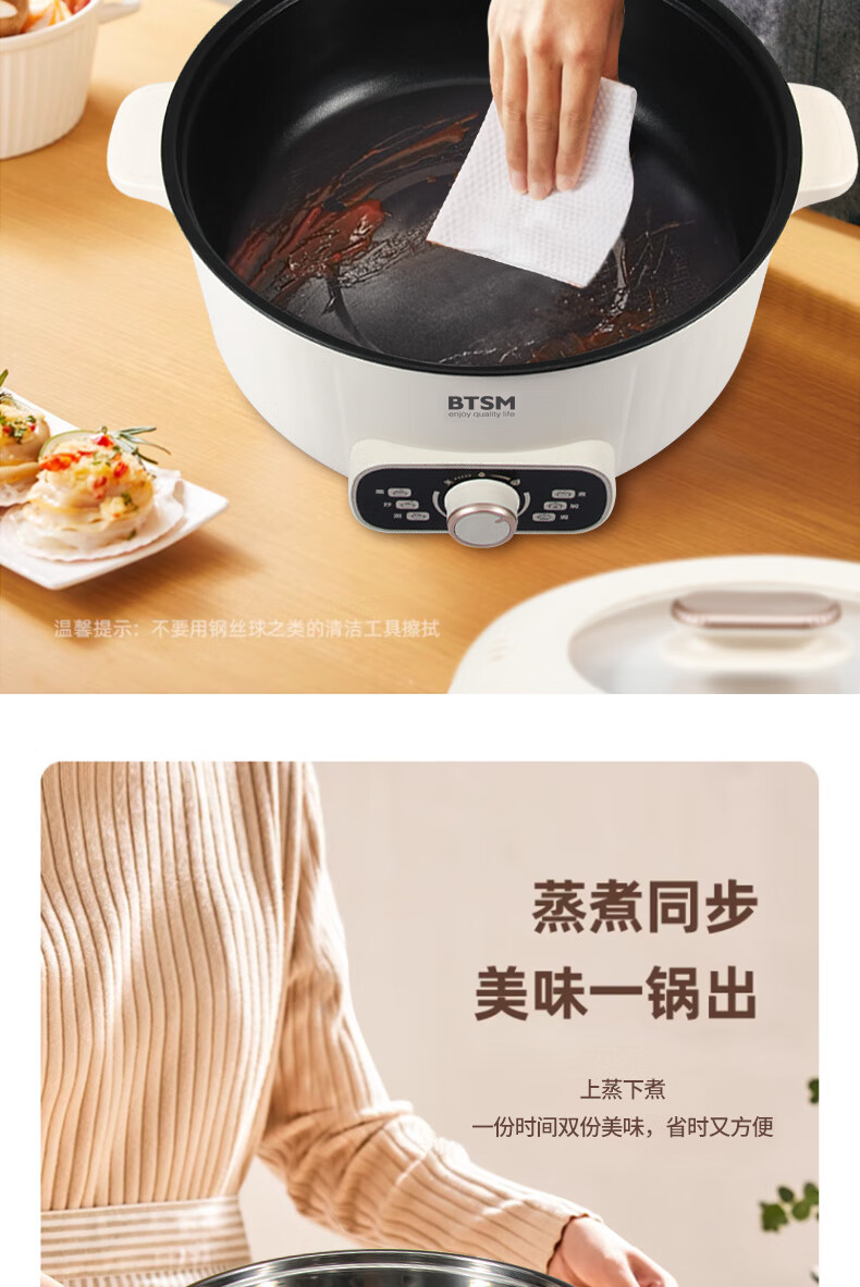 BTSM 多用途电锅 BTZL-J1521 额定容量:12L(火锅6L+蒸格6L) 白色(单位:台)
