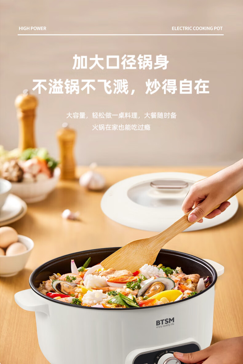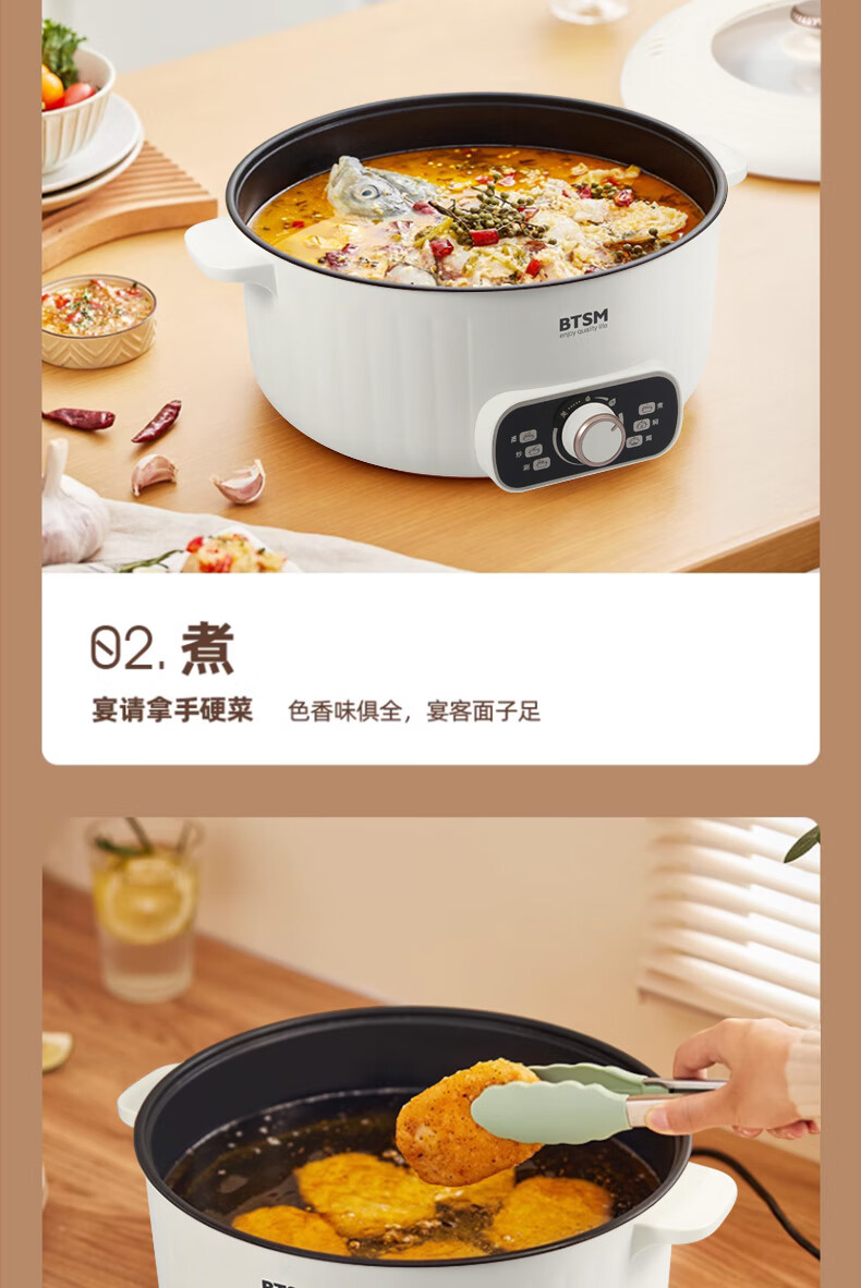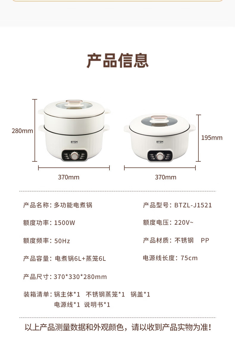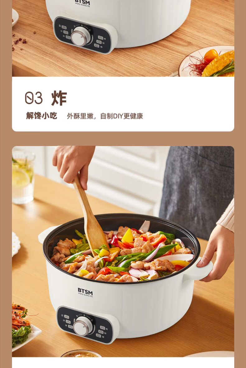 BTSM 多用途电锅 BTZL-J1521 额定容量:12L(火锅6L+蒸格6L) 白色(单位:台)